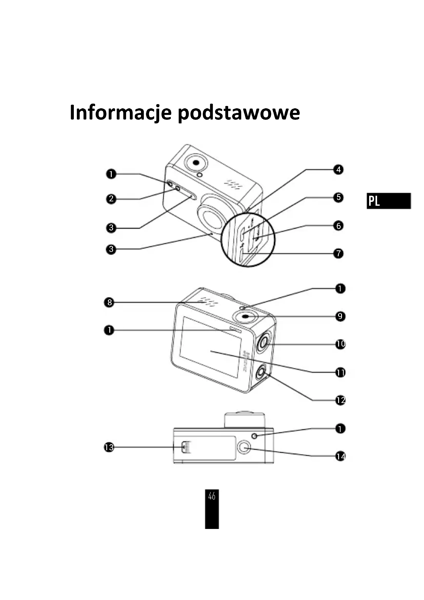 461 Wskaźnik LED stanu nagrywania Włączony: stan gotowości Miga: nagrywanie 2 Wskaźnik LED stanu Wi-Fi Wyłączony: sieć Wi-Fi jest wyłączona Miga: sieć Wi-Fi jest włączona 3 Mikrofon Mikrofon 4 Wskaźnik ładowania 5 Złącze micro HDMI Podłączanie przewodu HDMI. 6 Gniazdo karty microSD Zainstaluj w gnieździe kartę microSD służącą do przechowywania danych. Karta microSD nie jest uwzględniona w zestawie. Należy zakupić ten produkt oddzielnie (zob. zalecane modele kart microSD na str. 51 ). 7 Złącze Type-C Podłączanie przewodu do przesyłania danych lub zasilacza. 8 Głośnik 9 Migawka Rozpoczynanie/zatrzymywanie nagrywania 10 Przycisk zasilania Naciśnij, aby włączyć/wyłączyć zasilanie. 11 Ekran LCD Ekran dotykowy LCD 12 Przycisk Wi-Fi Naciśnij i przytrzymaj, aby włączyć funkcję Wi-Fi. 13 Pokrywa baterii Otwórz, aby uzyskać dostęp do baterii. 14 Standardowe złącze uchwytu (1/4 cala) Złącze dla różnych uchwytów. 47PL Opis ekranu 1 Stan karty Micro SD 6 Poziom naładowania baterii 2 Podgląd na żywo 7 Przesuń w dół, aby skonfigurować parametry. 3 Naciśnij, aby wybrać tryb kamery. 8 Naciśnij, aby skonfigurować więcej parametrów. 4 Naciśnij, aby ustawić rozdzielczość. 9 Naciśnij, aby ustawić liczbę klatek na sekundę. 5 Stan funkcji H.265 00:00:00 30FPS4K H.265