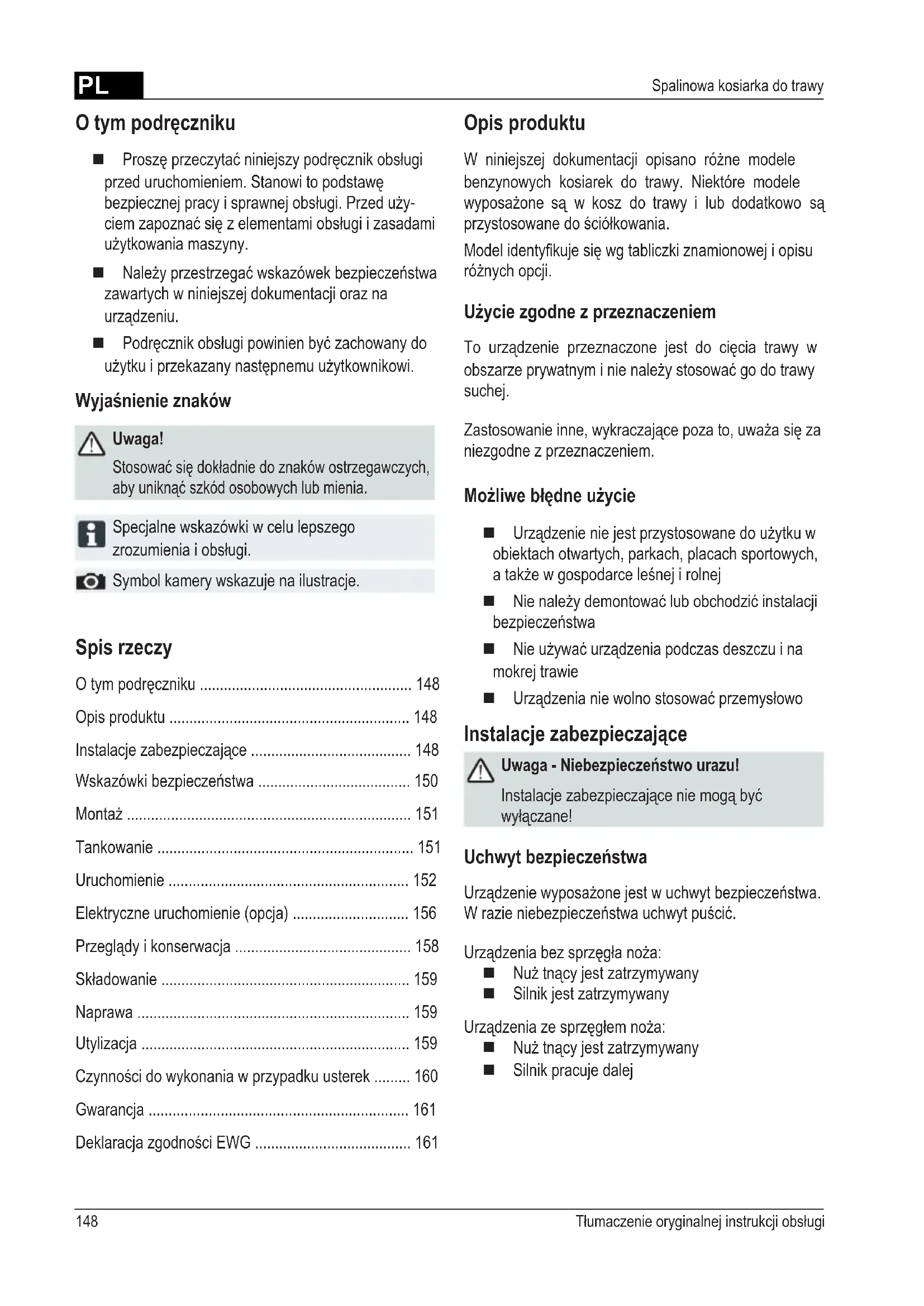 - Spalinowa kosiarka do trawy Spis rzeczy O tym podręczniku p. 148