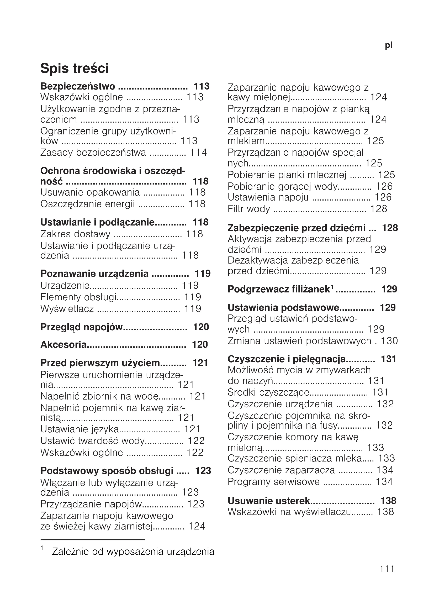 - "Czyszczenie spieniacza mleka", Strona133Usuwanie usterek pl