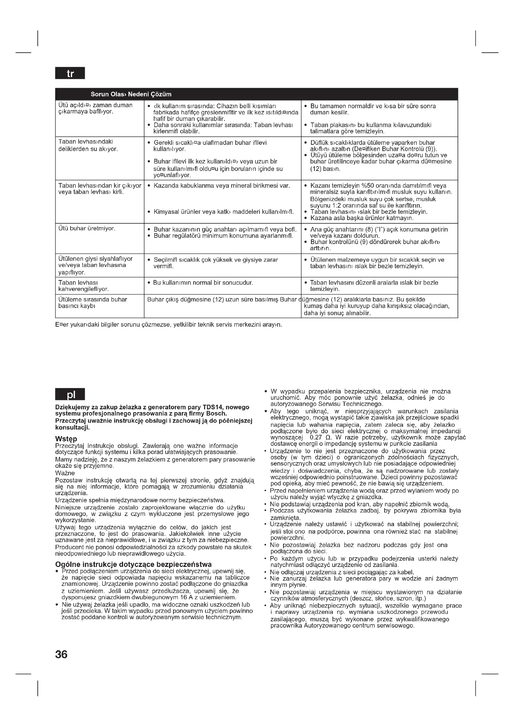 Dziękujemy za zakup żelazka z generatorem pary TDS14, nowego systemu profesjonalnego prasowania z parą rmy Bosch. Przeczytaj uważnie instrukcję obsługi i zachowaj ją do póêniejszej konsultacji. Wstęp Przeczytaj instrukcje obsługi. Zawierają one ważne informacje dotyczące funkcji systemu i kilka porad ułatwiających prasowanie. Mamy nadzieję, że z naszym żelazkiem z generatorem pary prasowanie okaże się przyjemne. Ważne Pozostaw instrukcję otwartą na tej pierwszej stronie, gdyż znajdują się na niej informacje, które pomagają w zrozumieniu działania urządzenia. Urządzenie spełnia międzynarodowe normy bezpieczeństwa. Niniejsze urządzenie zostało zaprojektowane włącznie do użytku domowego, w związku z czym wykluczone jest przemysłowe jego wykorzystanie. Używaj tego urządzenia wyłącznie do celów, do jakich jest przeznaczone, to jest do prasowania. Jakiekolwiek inne użycie uznawane jest za nieprawidłowe, i w związku z tym za niebezpieczne. Producent nie ponosi odpowiedzialności za szkody powstałe na skutek nieodpowiedniego lub nieprawidłowego użycia. Ogólne instrukcje dotyczące bezpieczeństwa