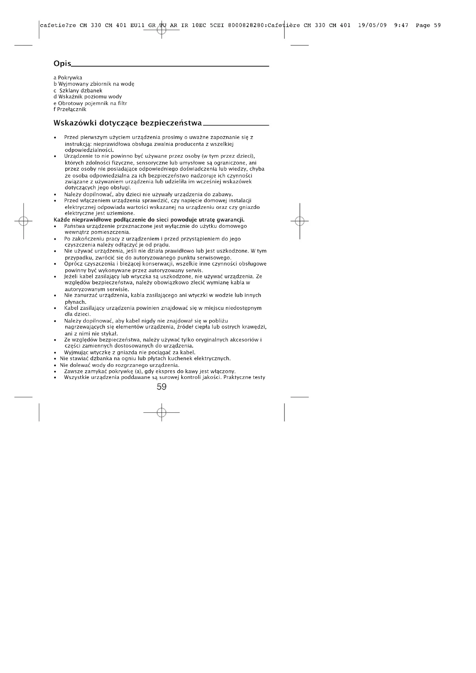 cafetie?re CM 330 CM 401 EU11 GR TU AR IR 10EC 5CEI 8000828280:Cafetière CM 330 CM 401 19/05/09 9:47 Page 59użytkowe są wykonywane na wybranych losowo urządzeniach, stąd na niektórych egzemplarzach mogą pojawić się ślady ich używania.
