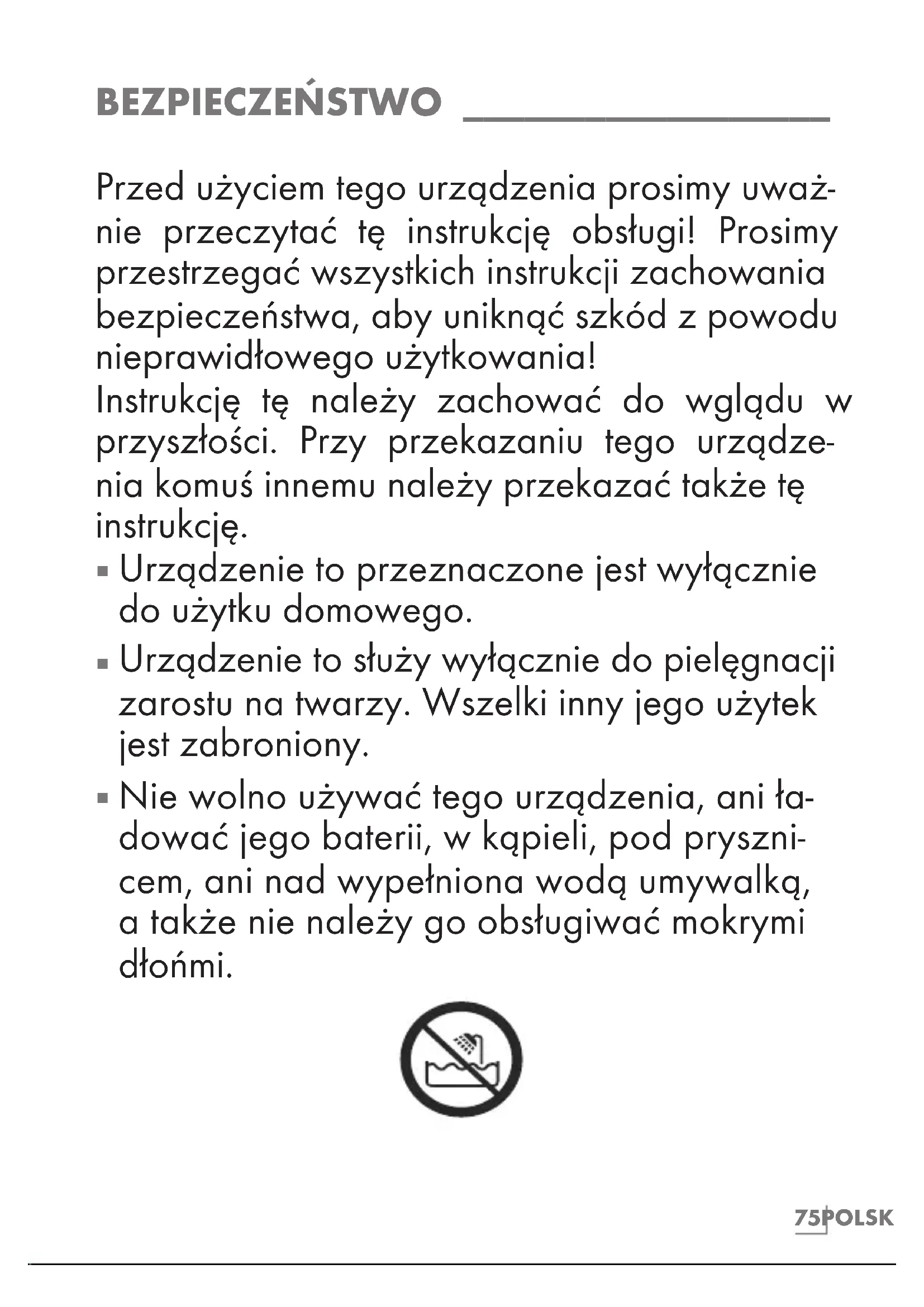 Urządzenie to służy wyłącznie do pielęgnacji zarostu na twarzy. Wszelki inny jego użytek jest zabroniony.