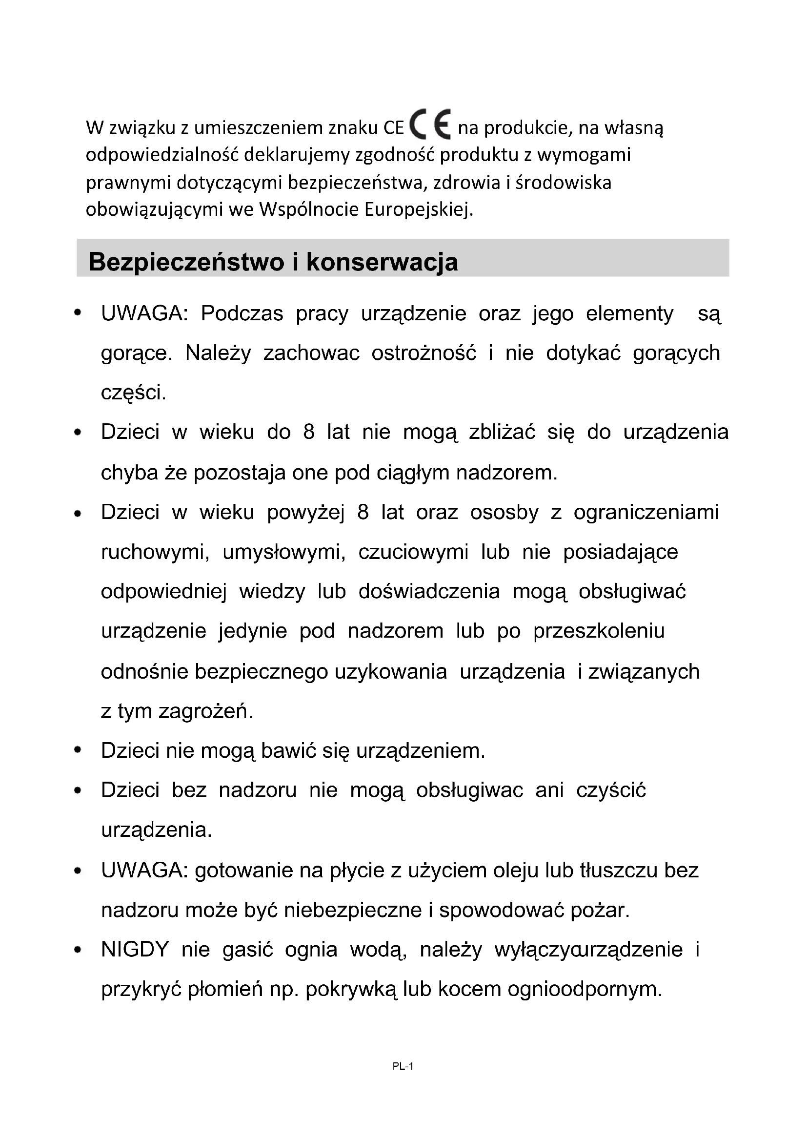 Dzieci oraz osoby niepełnosprawne powinny przebywać z dala od kuchenki. Nigdy nie pozwalaj im na korzystanie z kuchenki. Nigdy nie zanurzaj płyty indukcyjnej w wodzie