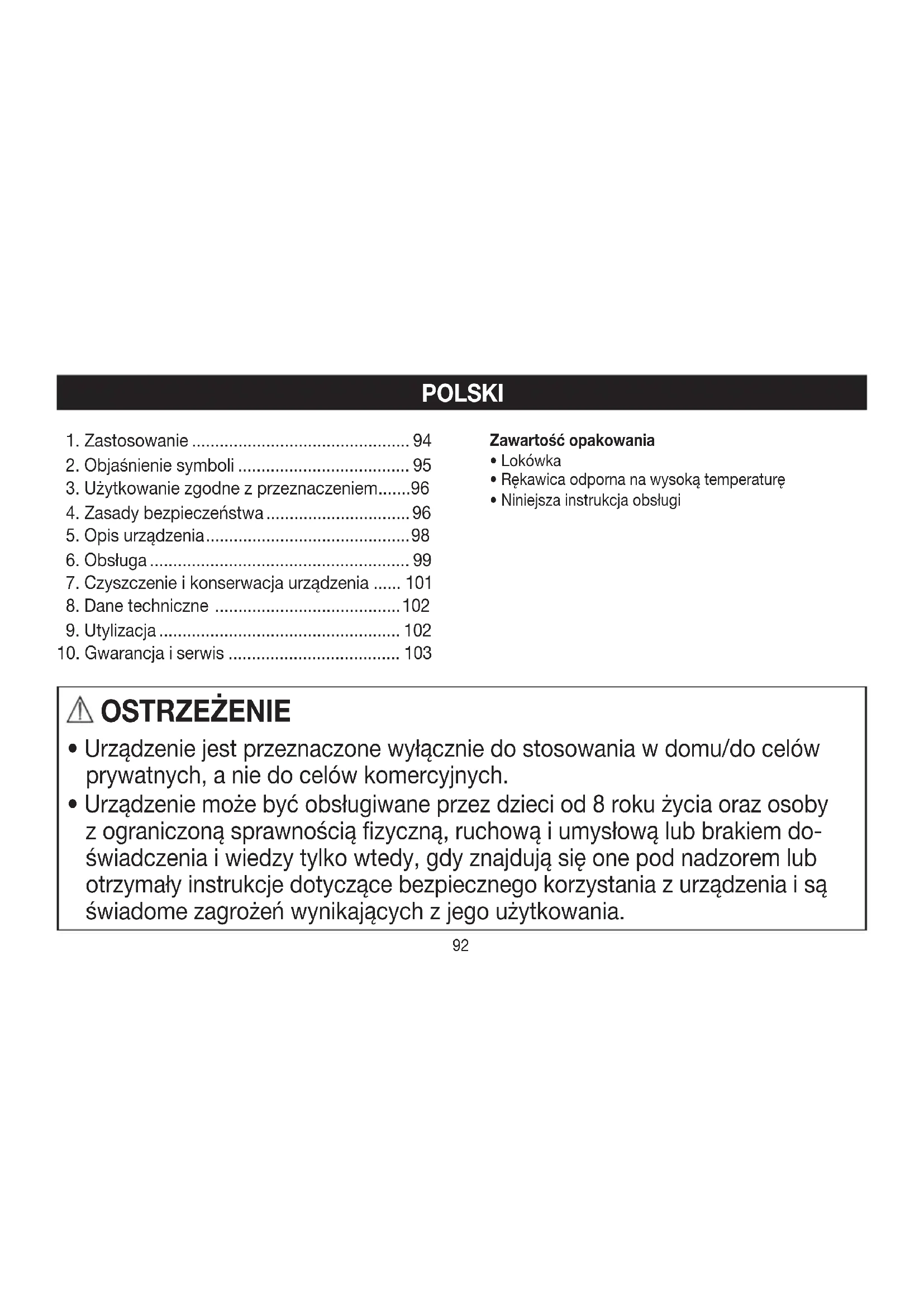 - Urządzenie jest przeznaczone wyłącznie do stosowania wdomu/do celów prywatnych, anie do celów komercyjnych.