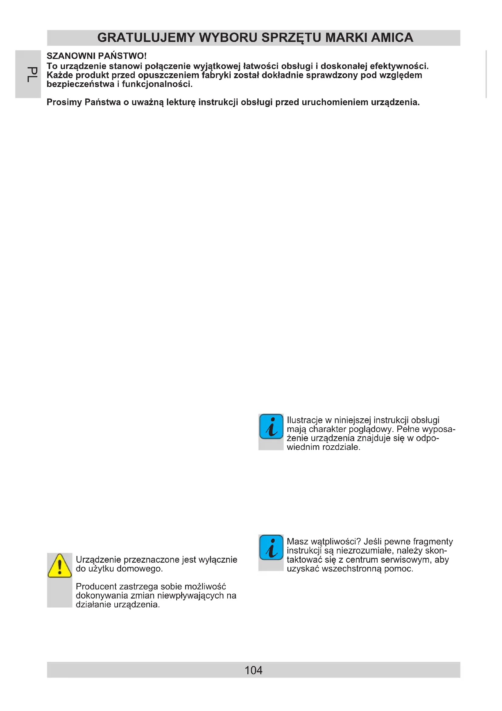 - Deze stap betreft alleen apparaten met twee ruimten, een koel- en een vriesruimte. NL104 Tourządzeniestanowipołączeniewyjątkowejłatwościobsługiidoskonałejefektywności. Każdeproduktprzedopuszczeniemfabrykizostałdokładniesprawdzonypodwzględem bezpieczeństwaifunkcjonalności. ProsimyPaństwaouważnąlekturęinstrukcjiobsługiprzeduruchomieniemurządzenia. SZANOWNIPAŃSTWO! GRATULUJEMYWYBORUSPRZĘTUMARKIAMICA
