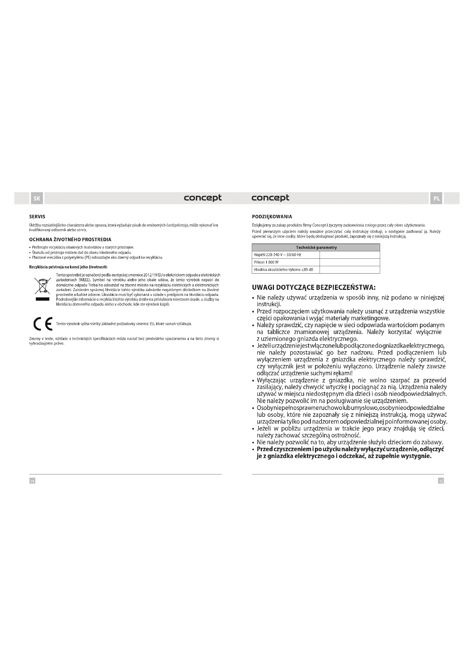 - Przed czyszczeniem i po użyciu należy wyłączyć urządzenie, odłączyć je z gniazdka elektrycznego i odczekać, aż zupełnie wystygnie. SERVIS Údržbu rozsiahlejšieho charakteru alebo opravu, ktorá vyžaduje zásah do vnútorných častí prístroja, môže vykonať len kvalifikovaný odborník alebo servis.