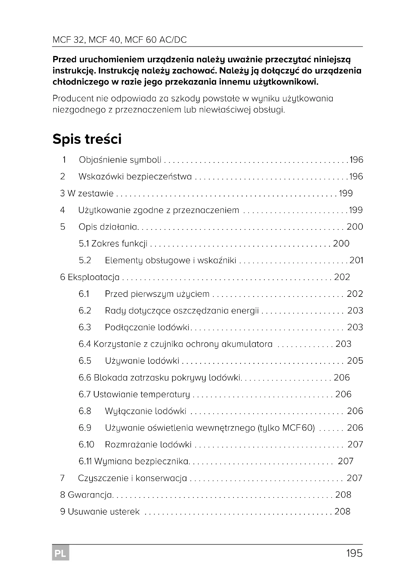Przed uruchomieniem urzqdzenia nalezy uwasnie przyczytać niniejszq instrukcję. Instrukcję nalezy zachownik. Nalezy jq dołgczyc do urzqdzenia chtodniczejego w razie和他的 przekazania innemu uzytkowników.