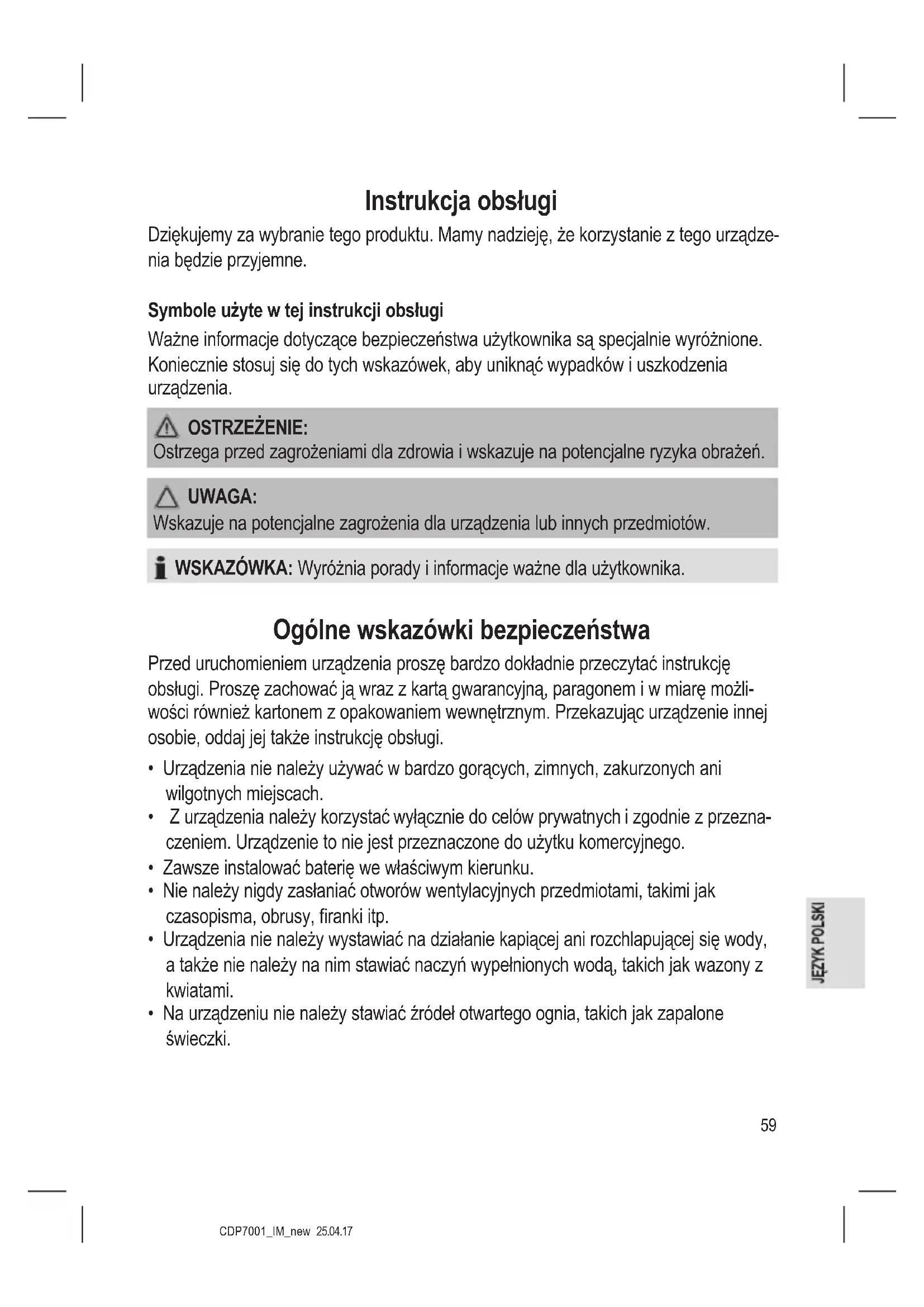 - Nie pozwalaj dzieciom bawić się urządzeniem.CDP7001_IM_new 25.04.17