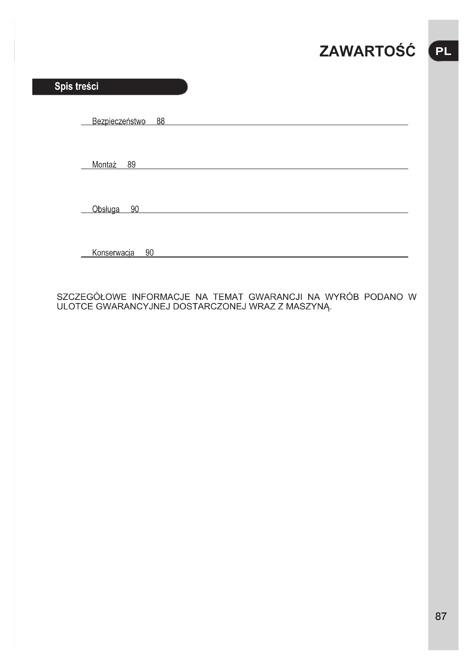 Bezpieczeństwo 88 Montaż 89 Obsługa 90 Konserwacja 90BEZPIECZEŃSTWO Ostrzeżenie! Uwaganaruchomeczęści. Przedprzystąpieniem doobsługimaszyny należy przeczytaćinstrukcje. Niezbliżaćdłonidonoża. Nosićgogleochronneiśrodki ochronysłuchuzgodnez normamibezpieczeństwa. Niezbliżaćstópdonoża. Nosićwytrzymałeobuwie antypoślizgowe. Uważaćnawyrzucanew powietrzeobiekty. Nosićrękawiceochronne. Zachowaćostrożność,abysię niepotknąć. Niezbliżaćsię.