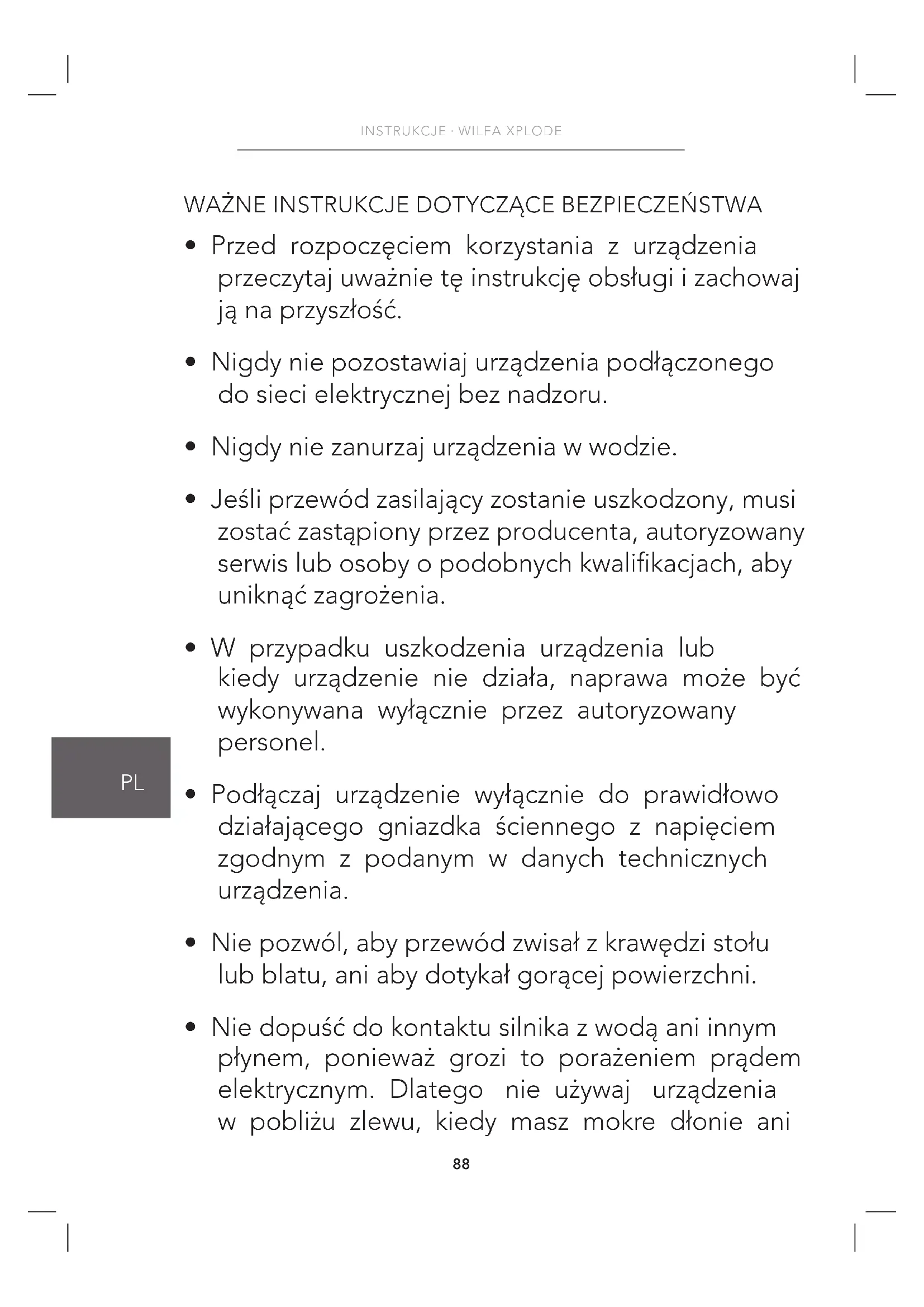 INSTRUKCJA OBSŁUGI Xplode Vital BBLSP1800S WILFA