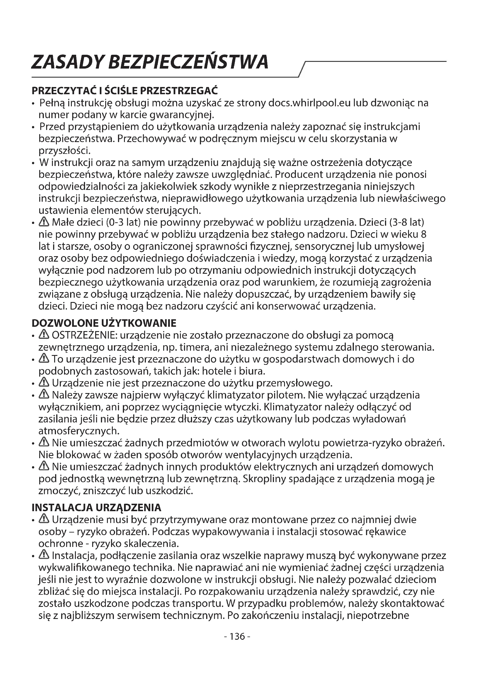 - Pełną instrukcję obsługi można uzyskać ze strony docs.whirlpool.eu lub dzwoniąc na numer podany w karcie gwarancyjnej.