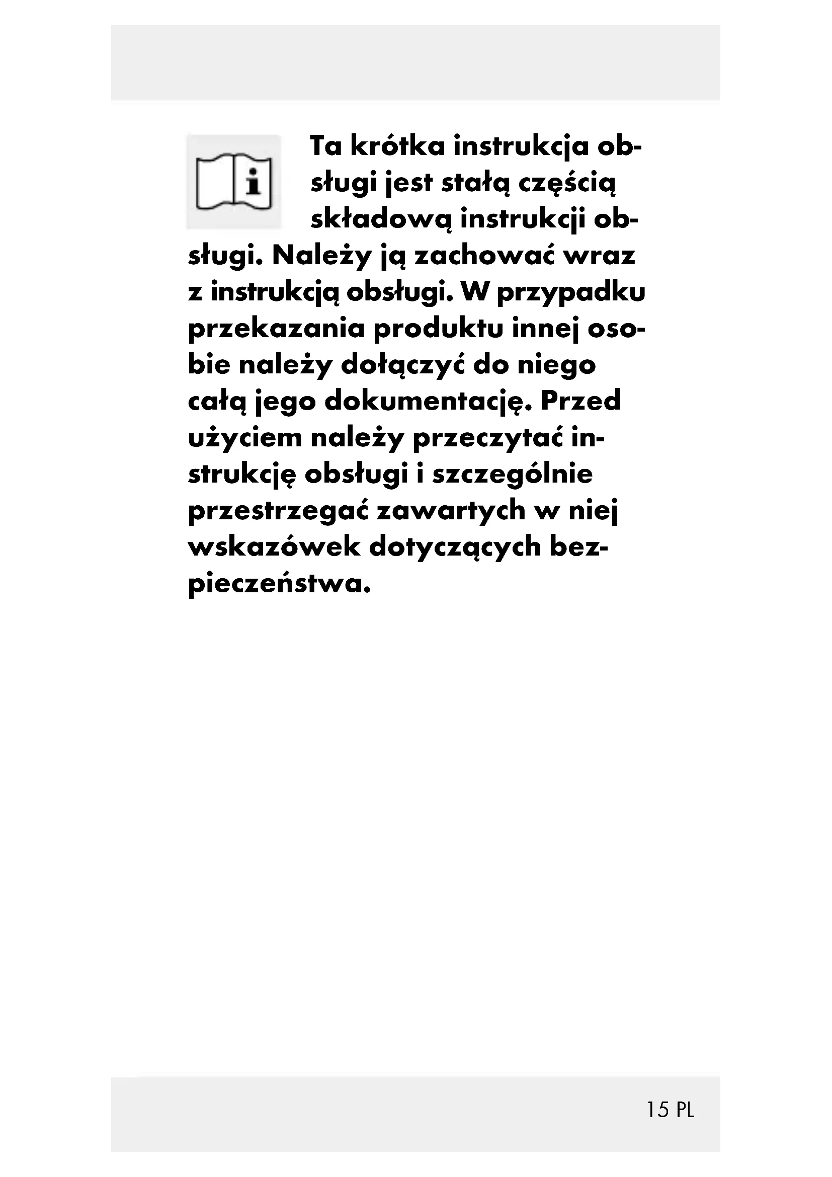 415 PL Ta krótka instrukcja ob- sługi jest stałą częścią składową instrukcji ob- sługi. Należy ją zachować wraz z instrukcją obsługi. W przypadku przekazania produktu innej oso- bie należy dołączyć do niego całą jego dokumentację. Przed użyciem należy przeczytać in- strukcję obsługi i szczególnie przestrzegać zawartych w niej wskazówek dotyczących bez- pieczeństwa.16 PL Włożyć baterie do odbiornika. Włożyć baterie do nadajnika.