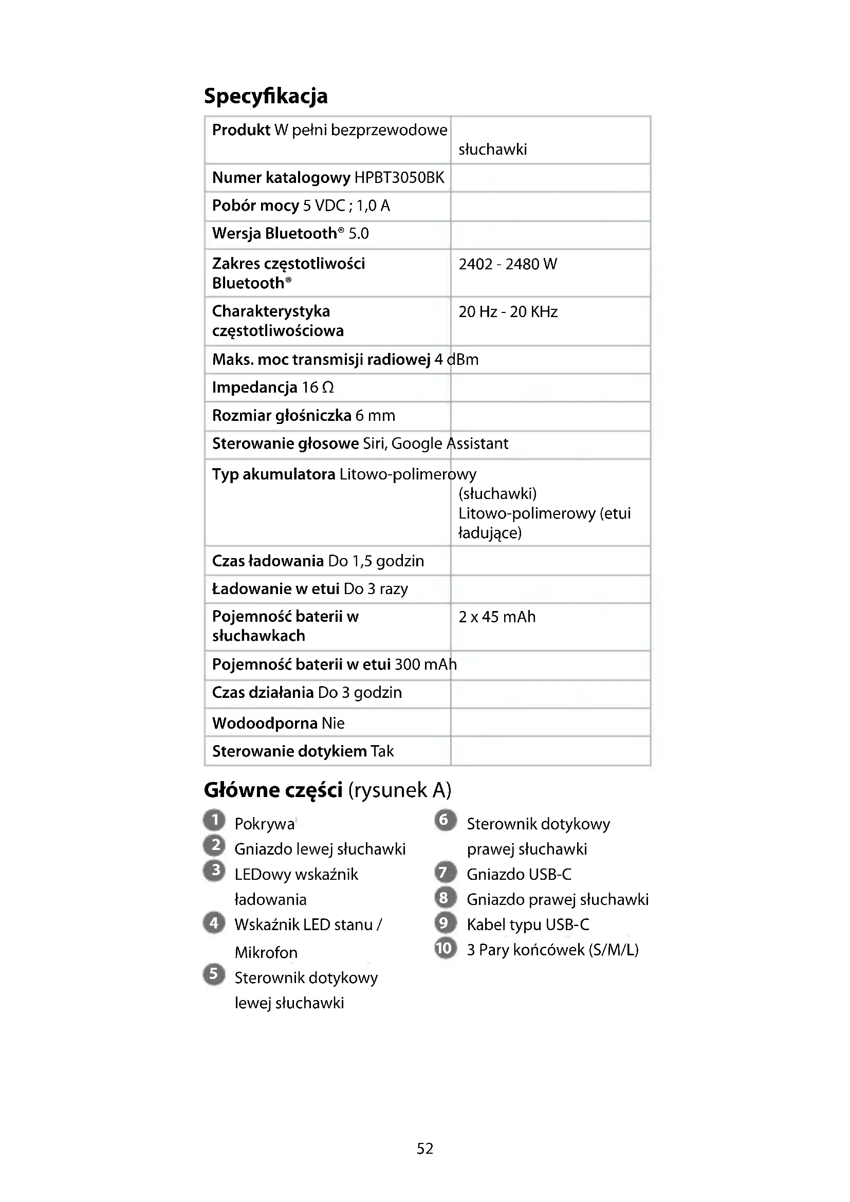 3 Pary końcówek (S/M/L)53 Instrukcje bezpieczeństwa