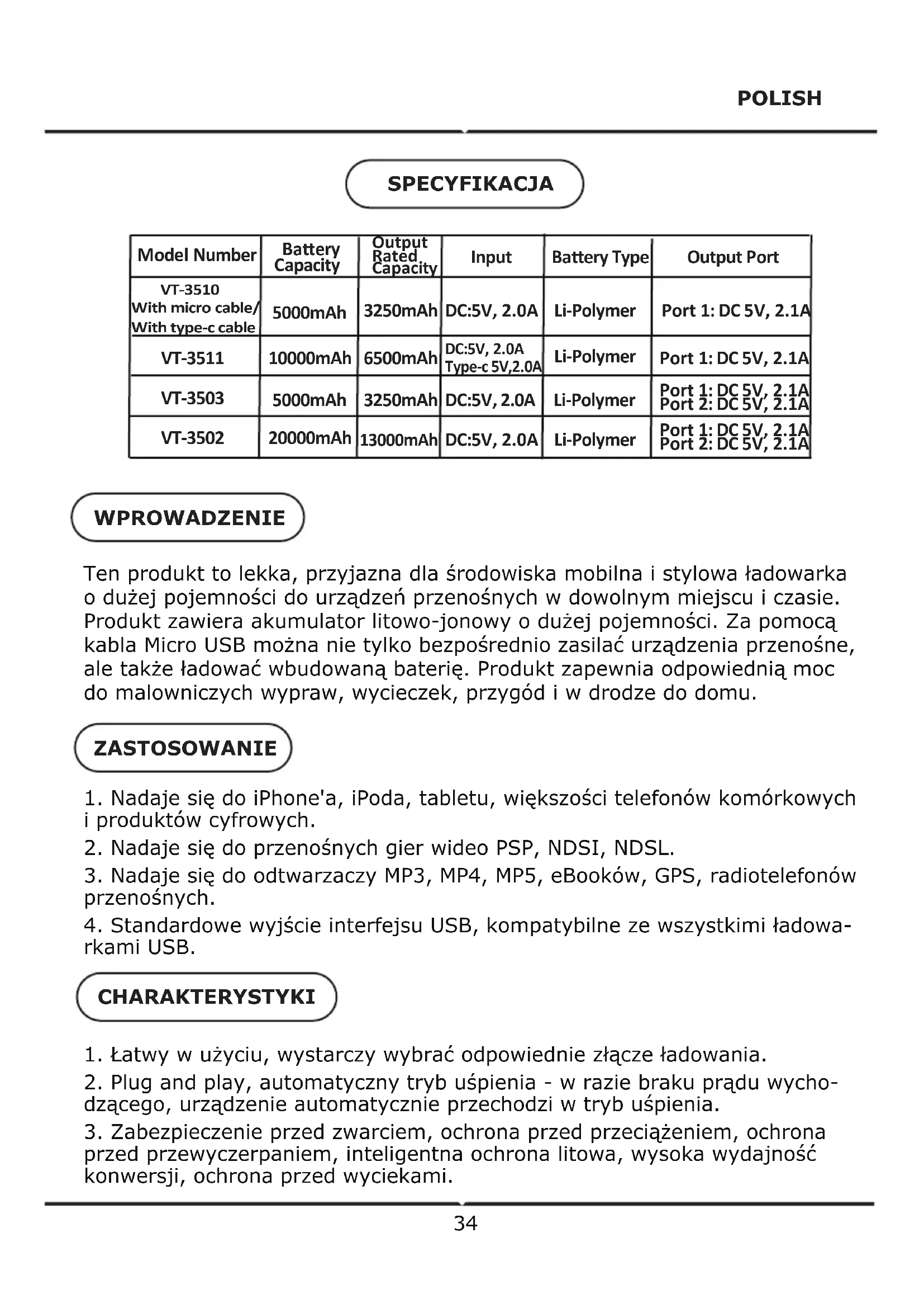 VT3511 - Powerbank V-TAC - Bezpłatna instrukcja obsługi