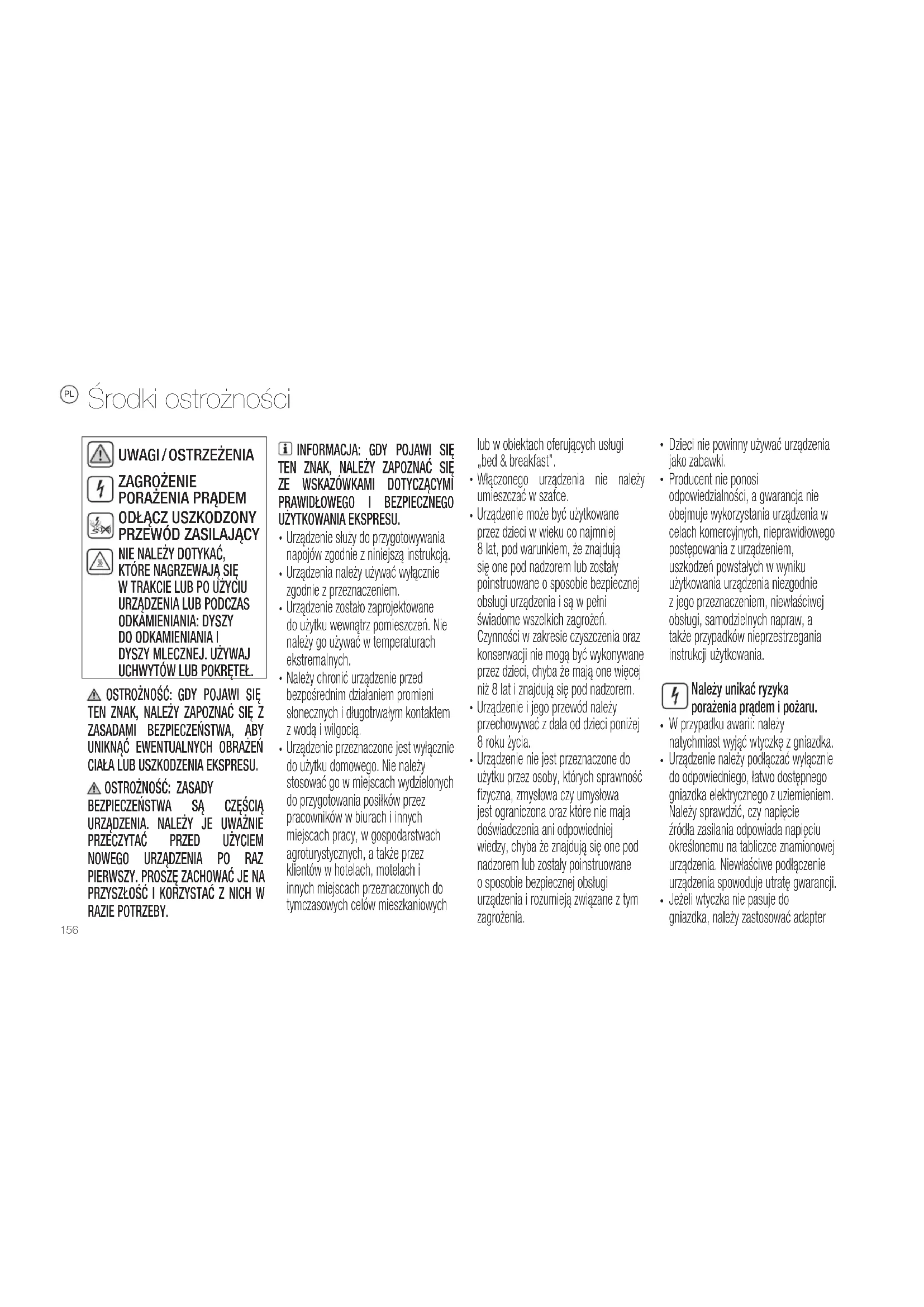 Nie należy umieszczać palców pod wylotem kawy, ponieważ grozi to poparzeniem.158