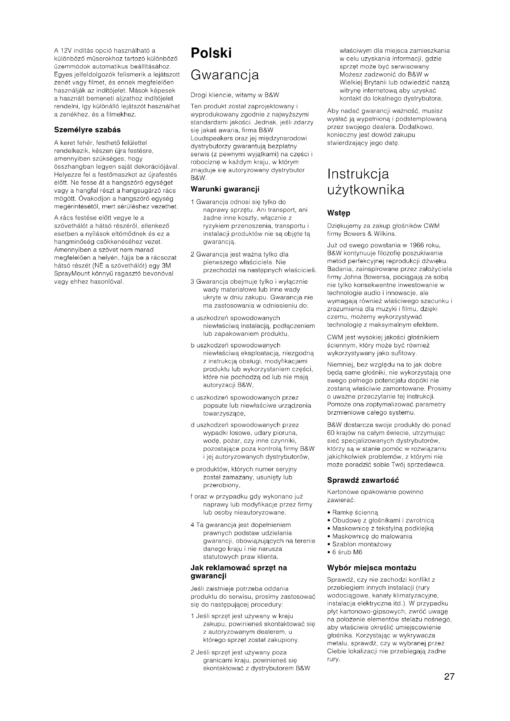CWM DS8 - Głośnik BOWERS & WILKINS - Bezpłatna instrukcja obsługi