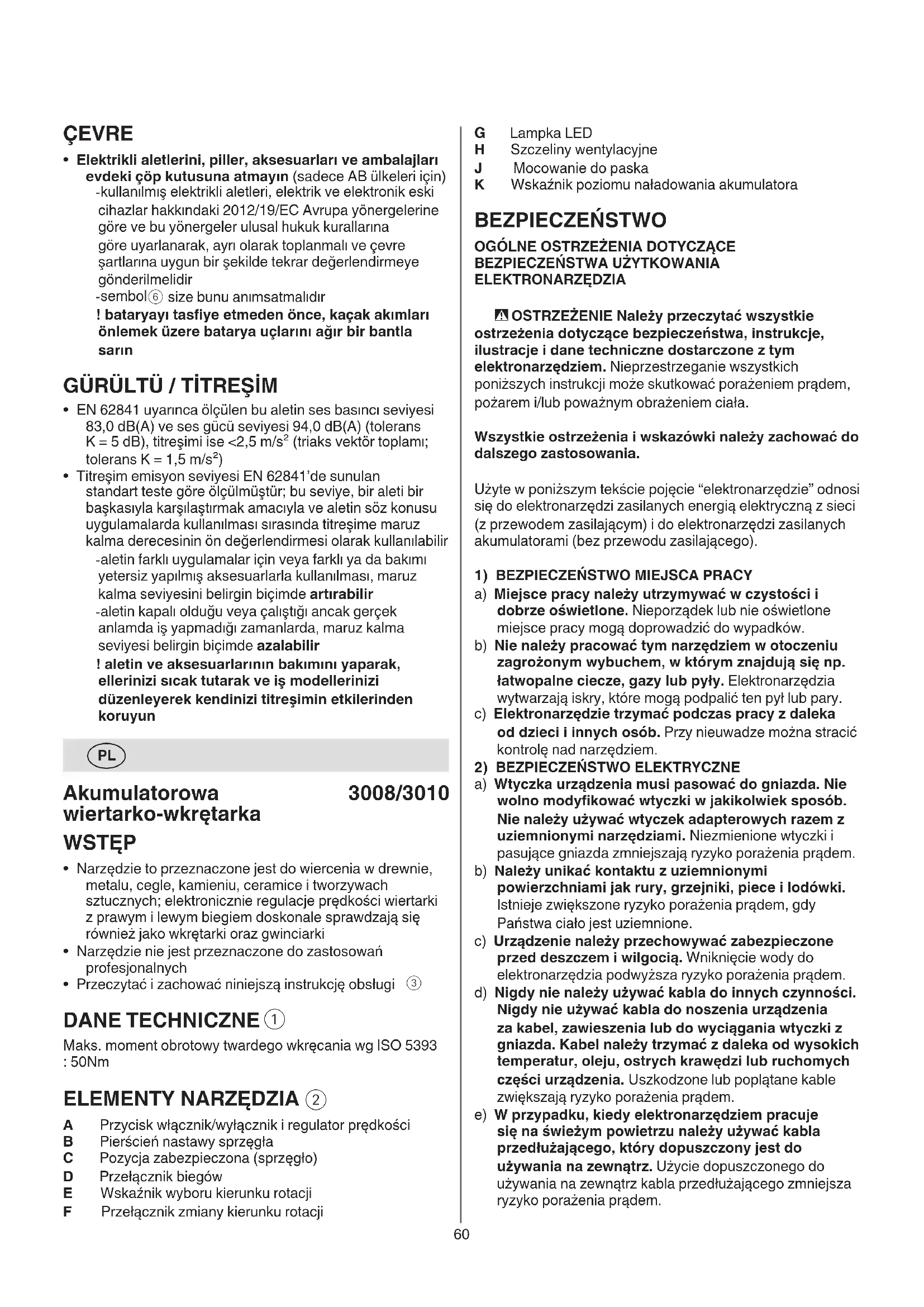Akumulatorowa wiertarko-wkrętarka 3008/3010 WSTĘP