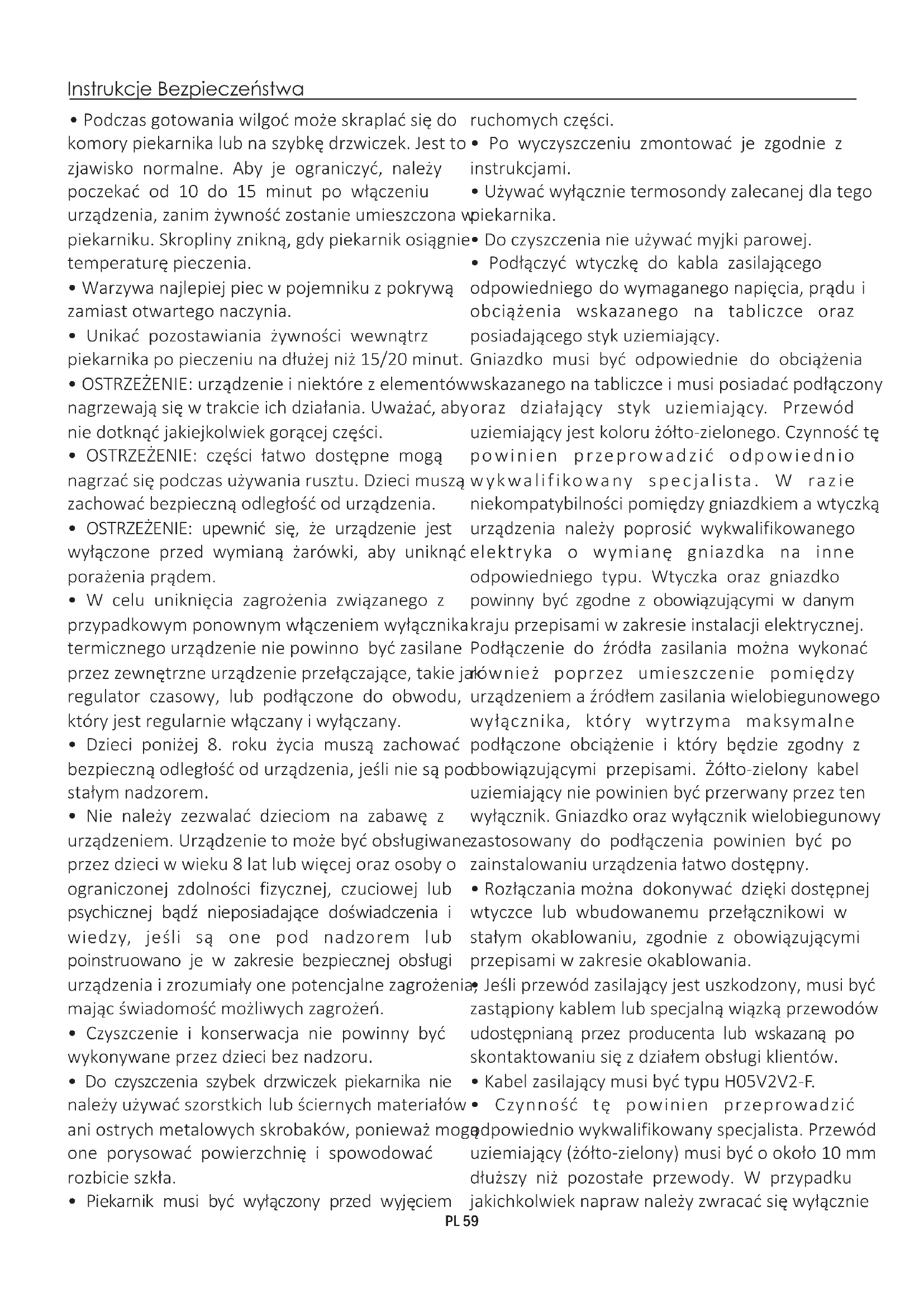 - Czynność tę powinien przeprowadzić odpowiednio wykwalifikowany specjalista. Przewód uziemiający (żółto-zielony) musi być o około 10 mm dłuższy niż pozostałe przewody. W przypadku jakichkolwiek napraw należy zwracać się wyłącznie PL 59do działu obsługi klienta i zażądać zastosowania oryginalnych części zamiennych.