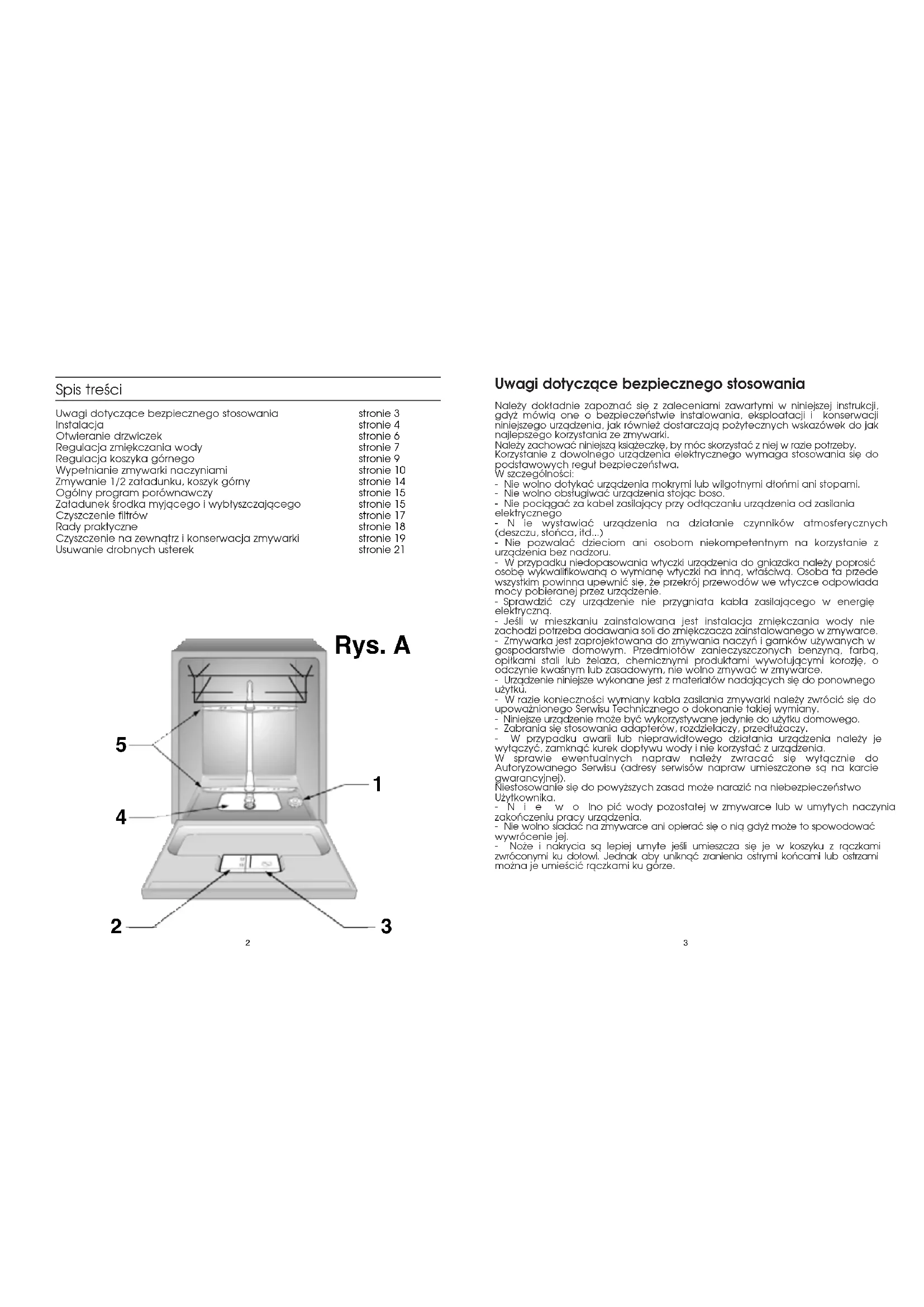 Fig. A Uwaga: Gdy jedna z cytowanych powy˝ej nieprawid∏owoÊci jest powodem z∏ego zmywania lub niewystarczajàcego p∏ukania, niezb´dne jest r´czne zebranie brudów z naczyƒ gdy˝ operacja koƒcowa spowoduje wyschni´cie zabrudzeƒ, których kolejne zmywanie w zmywarce nie by∏oby w stanie oczyÊciç. JeÊli z∏e dzia∏anie zmywarki utrzymuje si´, nale˝y zwróciç si´ do Dzia∏u Serwisowego podajàc nazw´ modelu zmywarki, umieszczonà na tabliczce znamionowej znajdujàcej si´ po wewn´trznej stronie drzwiczek, w cz´Êci górnej, lub na egzemplarzu gwarancji. Informacje te umo˝liwià dokonanie szybszego i skuteczniejszego serwisu. Producent zrzeka si´ wszelkiej odpowiedzialnoÊci za b∏´dy w druku niniejszej instrukcji. Ponadto zastrzega sobie prawo wprowadzania zmian które uzna za u˝yteczne bez pogorszenia podstawowych charakterystyk.