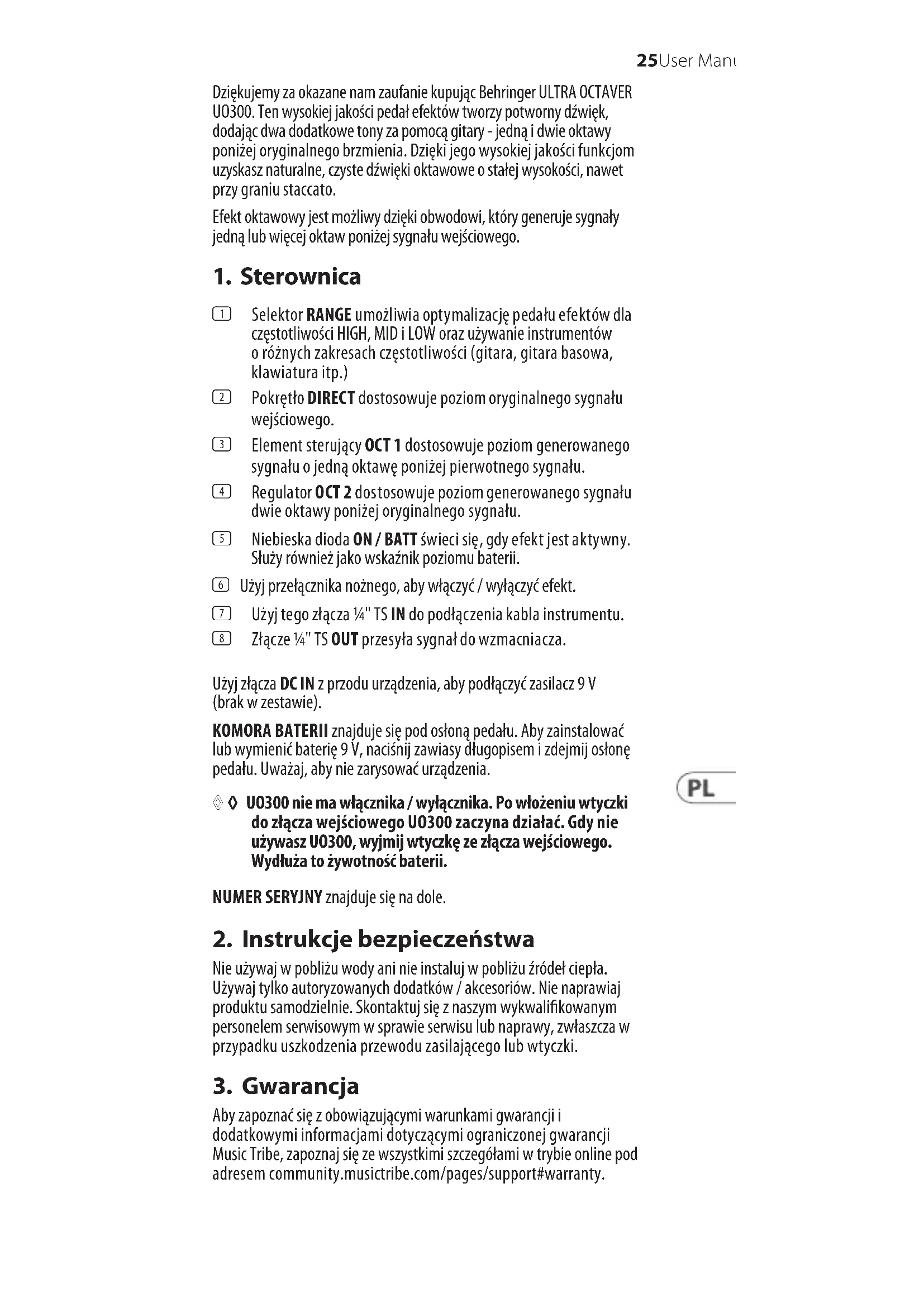 Aby zapoznać się z obowiązującymi warunkami gwarancji i dodatkowymi informacjami dotyczącymi ograniczonej gwarancji MusicTribe, zapoznaj się ze wszystkimi szczegółami w trybie online pod adresem community.musictribe.com/pages/support#warranty.26 ULTRA OCTAVER UO300