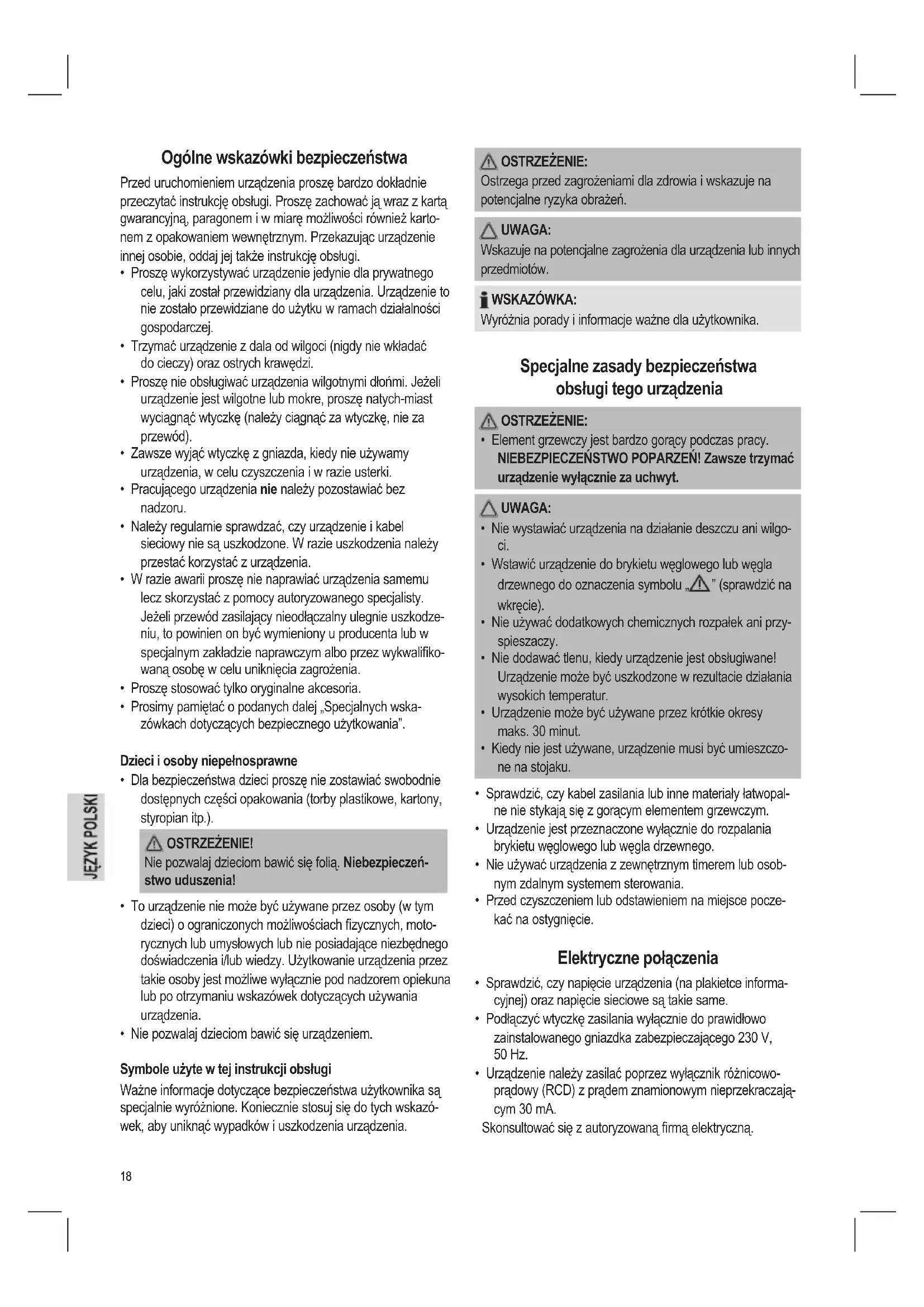 - Urządzenie jest przeznaczone wyłącznie do rozpalania brykietu węglowego lub węgla drzewnego.