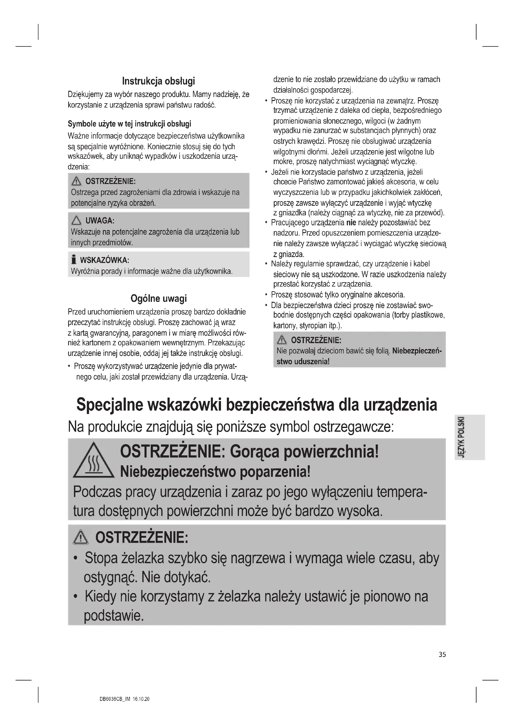 - Czynności w zakresie czyszczenia oraz konserwacji nie mogą wykonywać dzieci.DB6038CB_IM 16.10.20
