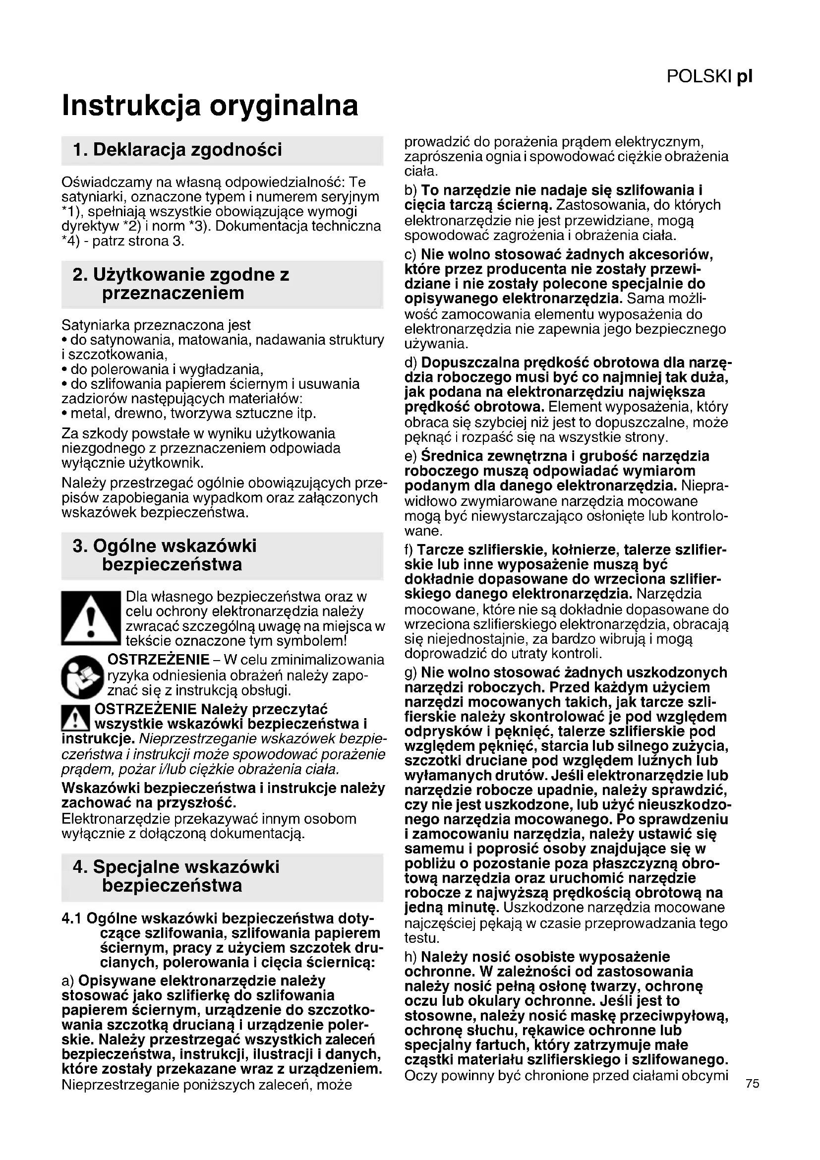 Instrukcja oryginalna Oświadczamy na własną odpowiedzialność: Te satyniarki, oznaczone typem i numerem seryjnym *1), spełniają wszystkie obowiązujące wymogi dyrektyw *2) i norm *3). Dokumentacja techniczna *4) - patrz strona 3. Satyniarka przeznaczona jest
