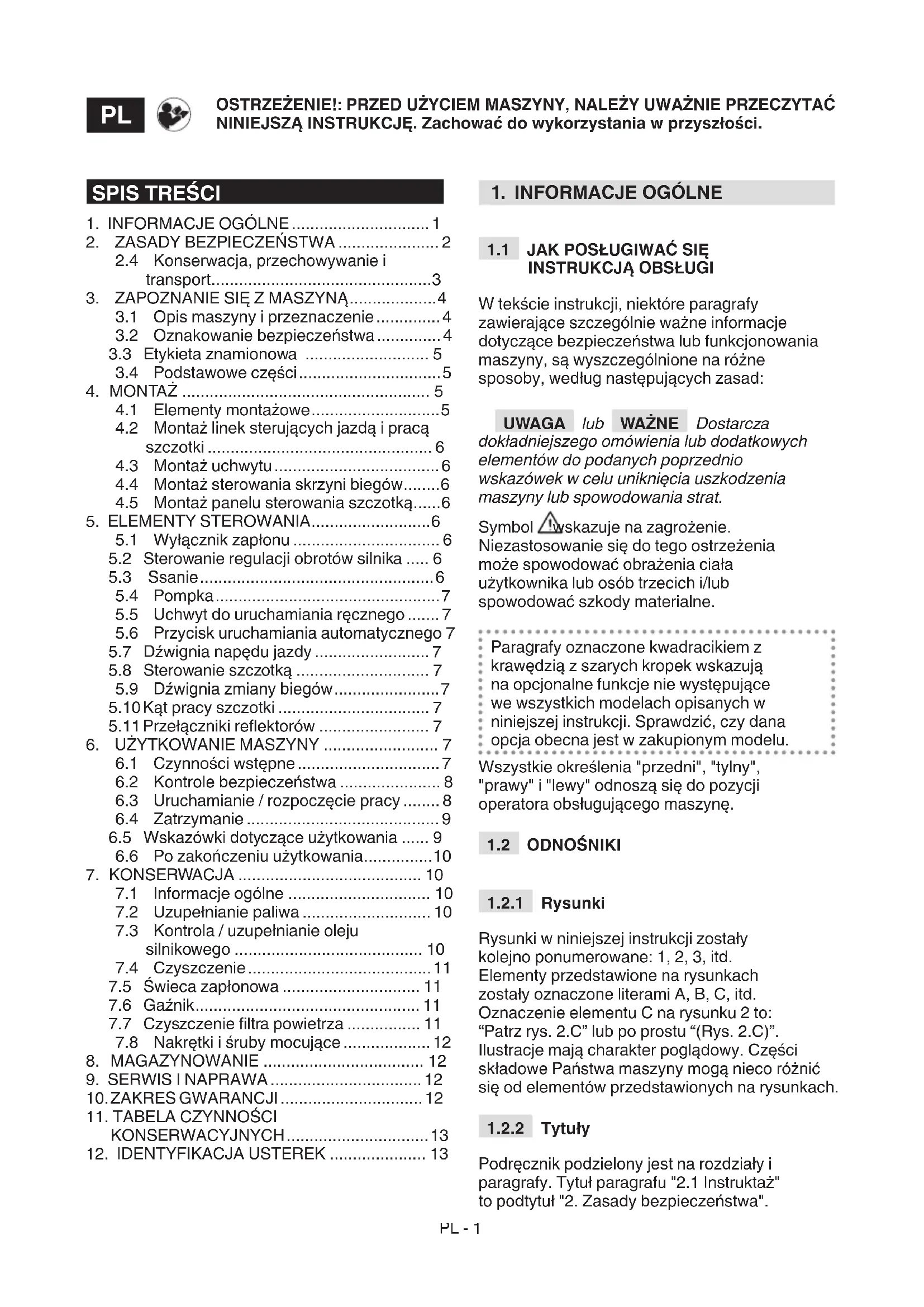 OSTRZEŻENIE: przed użyciem maszyny, należy uważnie przeczytać niniejszą instrukcję.