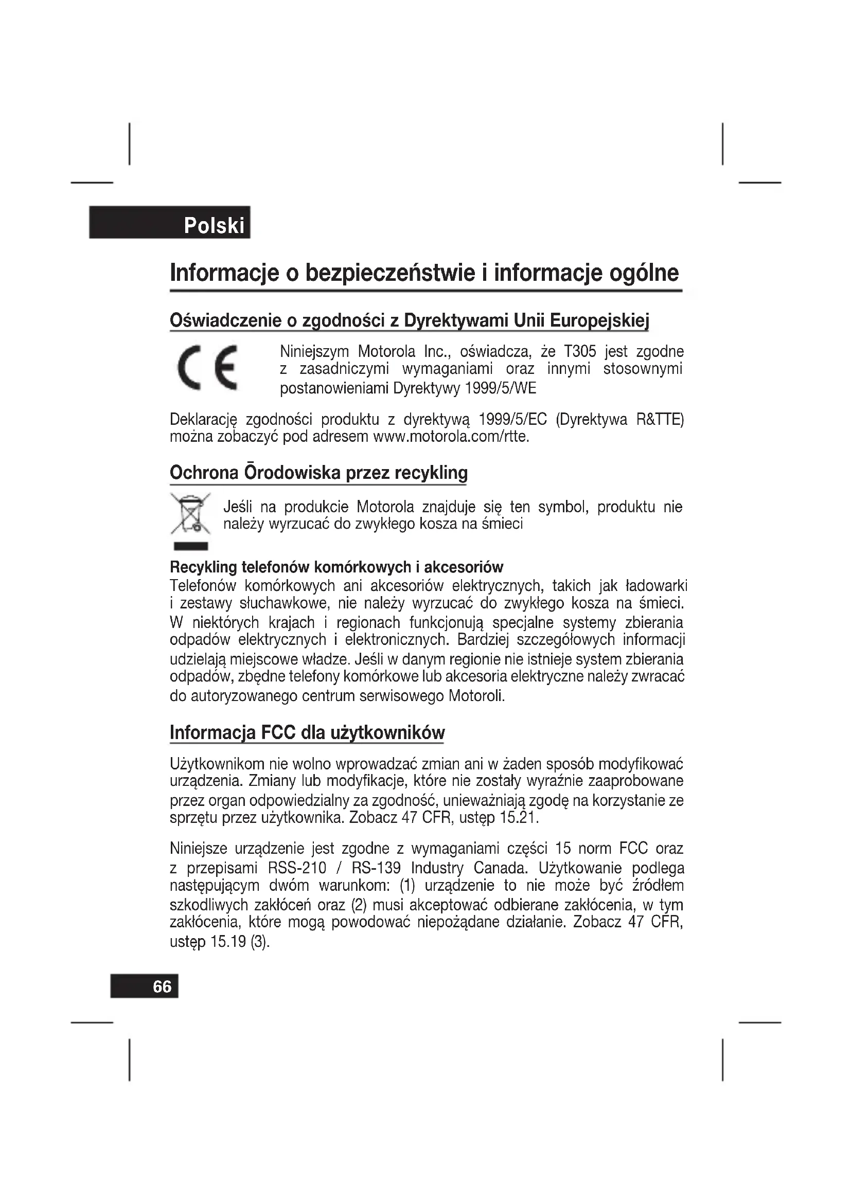 INSTRUKCJA OBSŁUGI T305 MOTOROLA