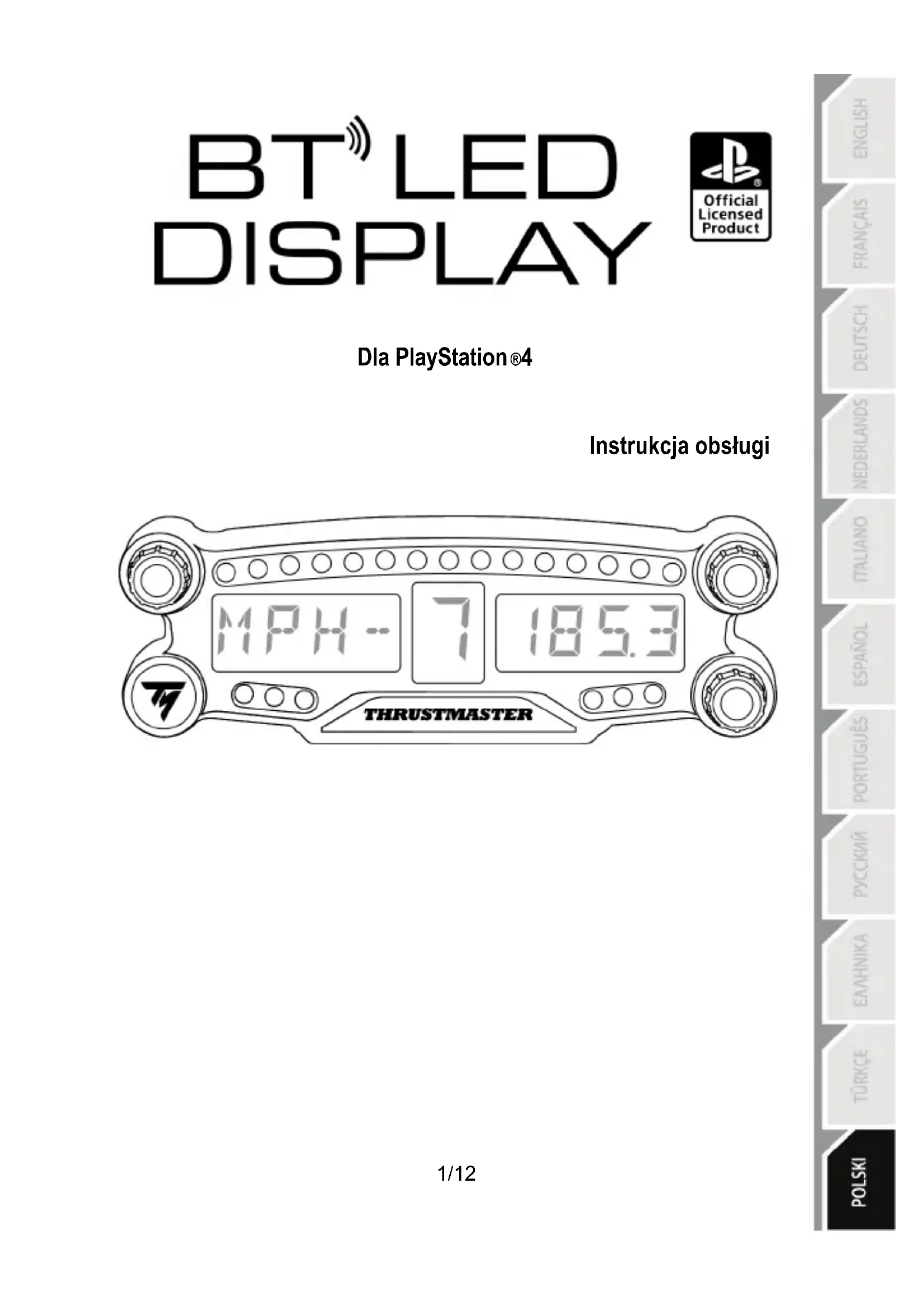 - Do nabycia osobno Więcej informacji na ten temat można znaleźć na stronie http://support.thrustmaster.com. Wybierz Racing wheels / BT LED DISPLAY, a następnie User manual lub FAQ.9/12