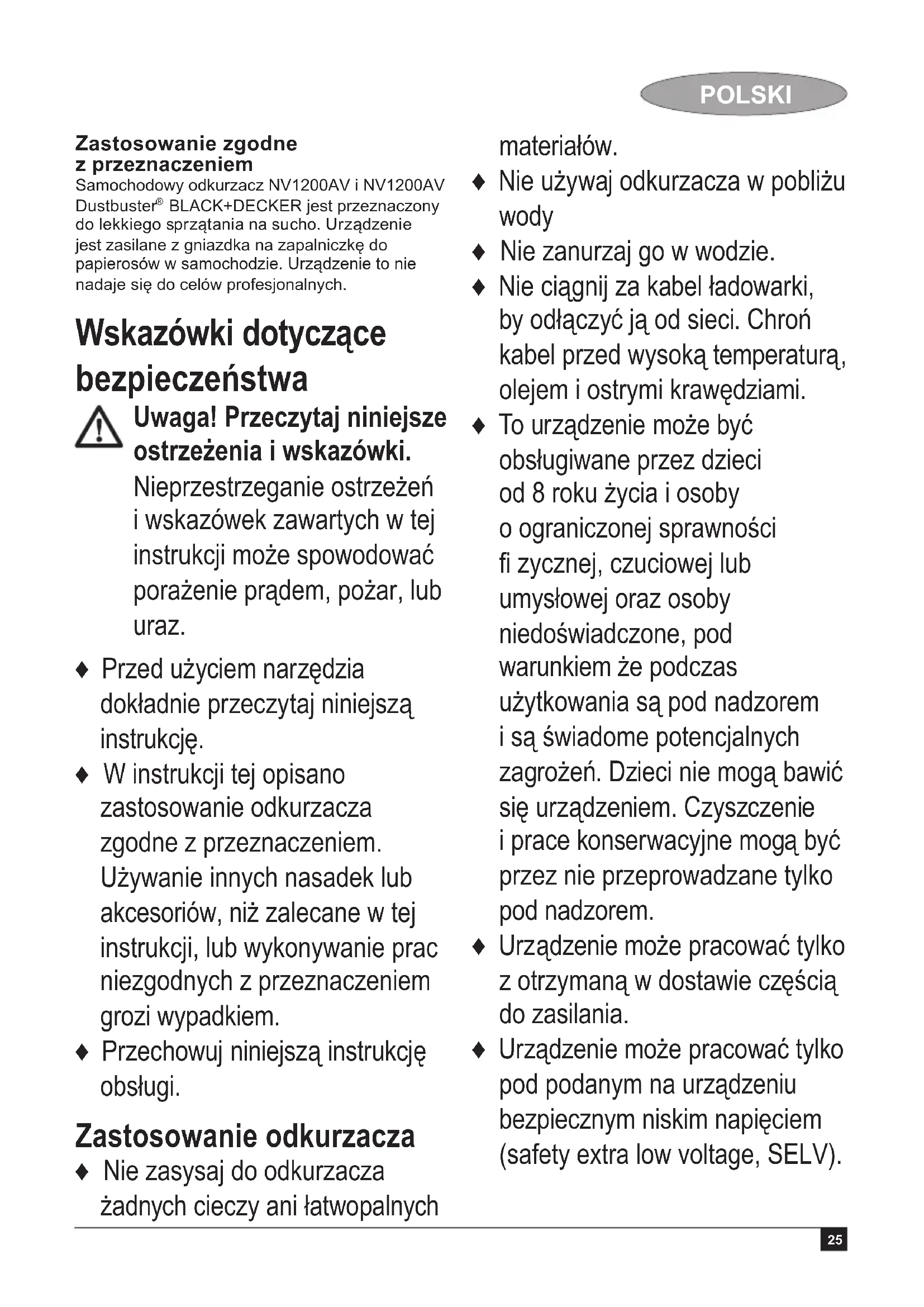 INSTRUKCJA OBSŁUGI Dustbuster Auto NV1210AV BLACK & DECKER