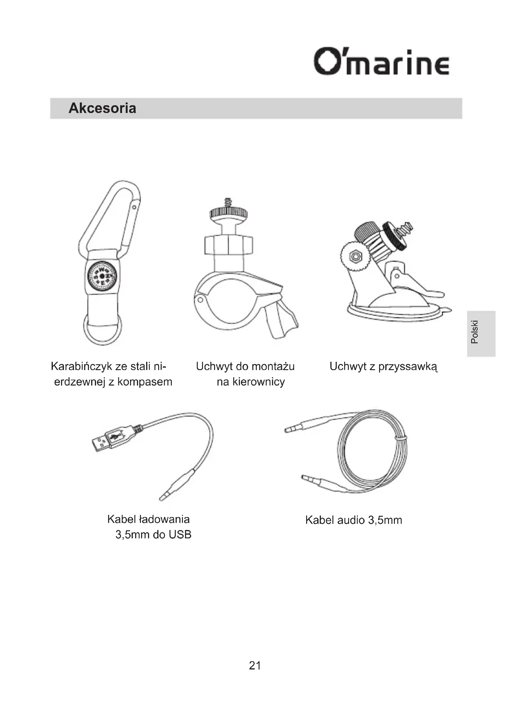 Liniowy zakres sygnału 30m (zależy od czynników środowiskowych) Specykacje *Funkcje kompasu wyłącznie w celach informacyjnych *Gwarancja nie obejmuje akcesoriów25 Příslušenství Karabina z nerezové oceli s kompasem 3,5 mm USB nabíjecí kabel 3,5 mm Jack / Zapojte do USB 2.0 typu A nabíjecí kabel Držák na řídítka Přísavný držák 3,5 mm audio kabel 3,5 mm stereo audio kabel Czech26
