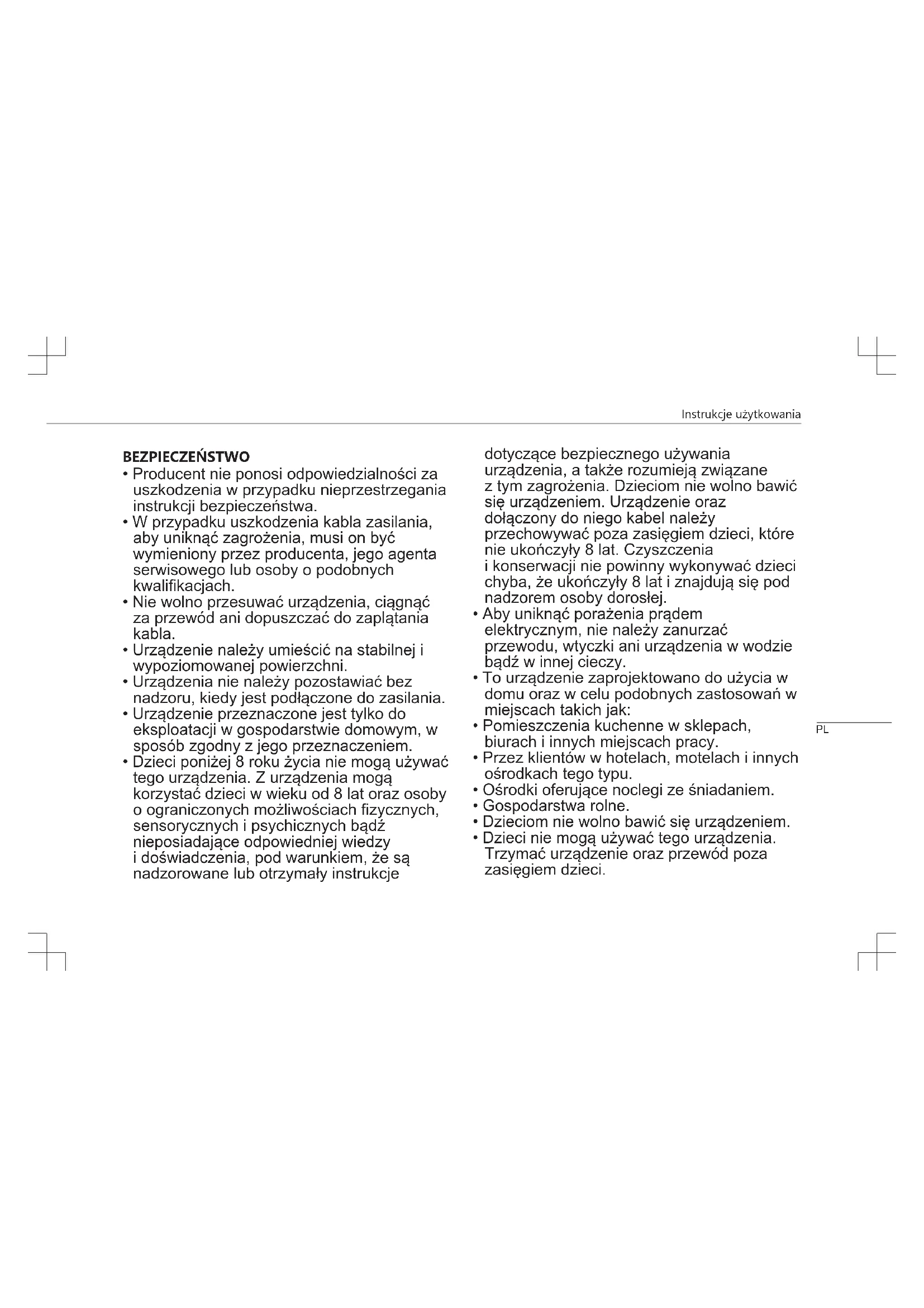 - Dzieci nie mogą używać tego urządzenia. Trzymać urządzenie oraz przewód poza zasięgiem dzieci. PLInstrukcje użytkowania