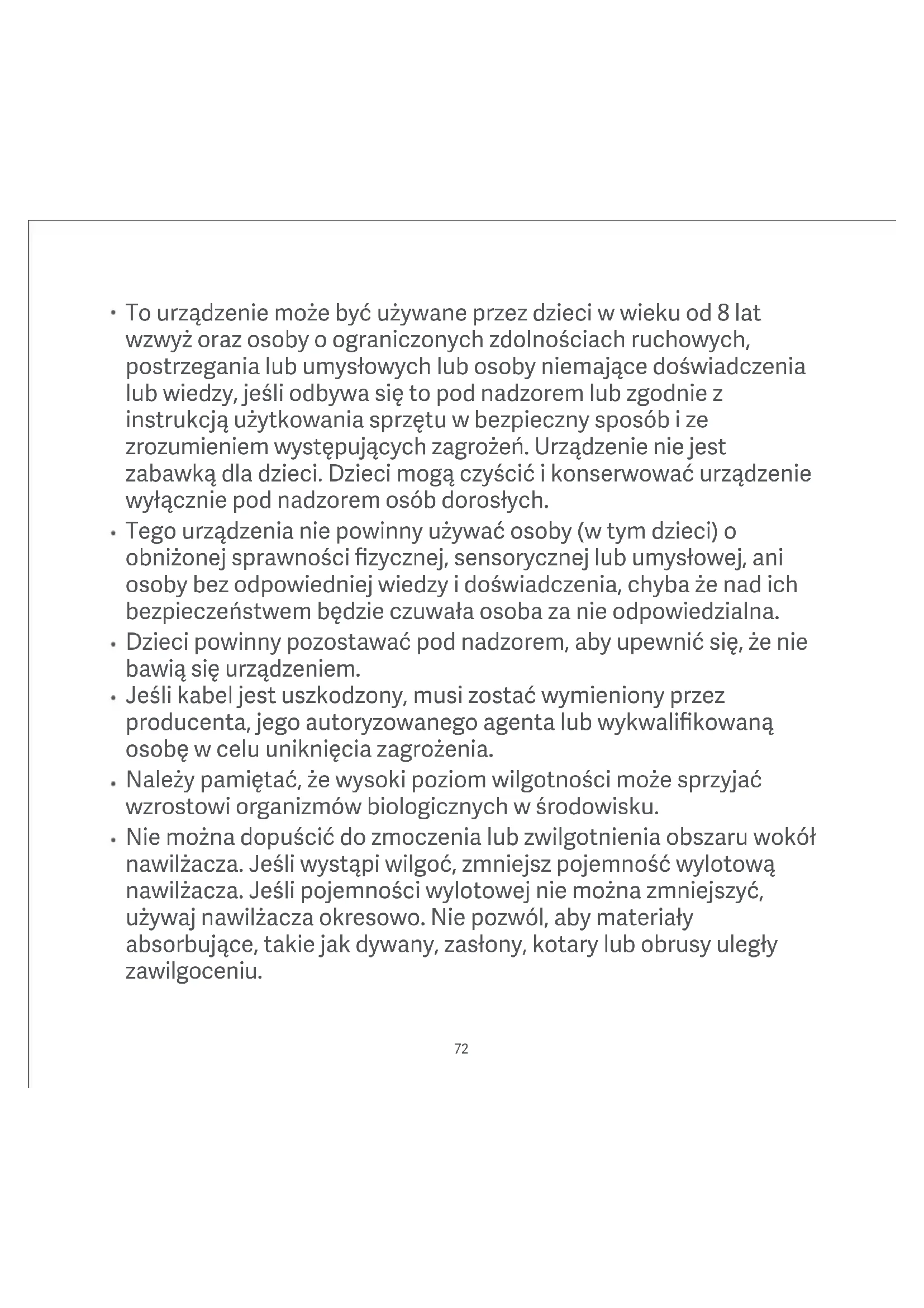 - Nazwa aplikacji Xiaomi Home obowiązuje w Europie (za wyjątkiem Rosji). Nazwa aplikacji wyświetlana w urządzeniu użytkownika jest obowiązująca. Uwaga: Wersja aplikacji mogła zostać uaktualniona. Wykonuj instrukcje bieżącej wersji aplikacji. Szczegółową elektroniczną instrukcję obsługi można znaleźć na stronie www.mi.com/global/service/userguide Model: ZNJSQ01DEM Znamionowe wejściowe: 25 W Napięcie znamionowe: 220-240 V~ Częstotliwość znamionowa: 50/60 Hz Pojemność zbiornika na wodę: 4.5 L Specyfikacja RF: 2,4 G Wi-Fi Maksymalna moc wyjściowa: <20 dBm Maks. pojemność nawilżania: 300 mL/h Wymiary pozycji: 190 × 190 × 353 mm Materiały: ABS, PC i PA Łączność bezprzewodowa: Wi-Fi IEEE 802.11 b/g/n 2.4 GHz Częstotliwo robocza: 2412-2472 MHz CID: WFA9711384 ﻦﻣ نﻮﻧﺎﻌﻳ ﻦﻣ ﻚﻟﺬﻛو ،زﺎﻬﺠﻟا اﺬﻫ ماﺪﺨﺘﺳا ﺮﺒﻛأ وأ ماﻮﻋأ 8 ﻦﺳ ﰲ لﺎﻔﻃﻸﻟ ﻦﻜﻤﻳ ﺔﻟﺎﺣ ﰲ ،تﺎﻣﻮﻠﻌﻤﻟاو ةﺮﺒﺨﻟا ﰲ ﺺﻘﻧ ﻢﻬﻳﺪﻟ وأ ﺔﻴﻠﻘﻋ وأ ﺔﻴﺴﺣ وأ ﺔﻳﺪﺴﺟ تﺎﻗﺎﻋإ ﻢﻬﻓو ﺔﻨﻣآ ﺔﻘﻳﺮﻄﺑ زﺎﻬﺠﻟا ماﺪﺨﺘﺳا صﻮﺼﺨﺑ تﺎﻤﻴﻠﻌﺘﻟا وأ فاﺮﺷﻹا ﻢﻳﺪﻘﺗ ﺔﻴﻠﻤﻋ ﻢﺘﺗ ﻻ نأ ﻲﻐﺒﻨﻳ ¢زﺎﻬﺠﻟﺎﺑ ﺚﺒﻌﻟا مﺪﻋ لﺎﻔﻃﻷا ﻰﻠﻋ¢ﻪﺑ ﺔﻘﻠﻌﺘﻤﻟا ﺮﻃﺎﺨﻤﻟا ¢فاﺮﺷإ نود لﺎﻔﻃﻷا ﺔﻄﺳاﻮﺑ مﺪﺨﺘﺴﻤﻟا ﺔﻄﺳاﻮﺑ زﺎﻬﺠﻟا ﺔﻧﺎﻴﺻو ﻒﻴﻈﻨﺗ تﺎﻗﺎﻋإ ﻦﻣ نﻮﻧﺎﻌﻳ صﺎﺨﺷأ وأ لﺎﻔﻃأ ﺔﻄﺳاﻮﺑ ماﺪﺨﺘﺳﻼﻟ ﺺﺼﺨﻣ ﺮﻴﻏ زﺎﻬﺠﻟا اﺬﻫ اﻮﻌﻀﺧ اذإ ﻻإ تﺎﻣﻮﻠﻌﻤﻟاو ةﺮﺒﺨﻟا ﰲ ﺺﻘﻧ ﻢﻬﻳﺪﻟ وأ ﺔﻴﻠﻘﻋ وأ ﺔﻴﺴﺣ وأ ﺔﻳﺪﺴﺟ ﺺﺨﺷ ﻞﺒﻗ ﻦﻣ زﺎﻬﺠﻟا ماﺪﺨﺘﺳﺎﺑ ﺔﻘﻠﻌﺘﻤﻟا تادﺎﺷرﻹﺎﺑ ﻢﻫﺪﻳوﺰﺗ ﻢﺗ وأ فاﺮﺷﻺﻟ ¢ﻢﻬﺘﻣﻼﺳ ﻦﻋ لوﺆﺴﻣ ¢زﺎﻬﺠﻟﺎﺑ نﻮﺜﺒﻌﻳ ﻻ ﻢﻬﻧأ ﻦﻣ ﺪﻛﺄﺘﻠﻟ لﺎﻔﻃﻷا ﺔﺒﻗاﺮﻣ ﺐﺠﻳ وأ ﺔﻌﻨﺼﻤﻟا ﺔﻬﺠﻟا ﻞﺒﻗ ﻦﻣ ﻪﻟاﺪﺒﺘﺳا ﺐﺠﻳ ﻲﺋﺎﺑﺮﻬﻜﻟا رﺎﻴﺘﻟا ﻚﻠﺳ ﻒﻠﺗ ﺔﻟﺎﺣ ﰲ ¢ﺮﻃﺎﺨﻤﻟا ﺐﻨﺠﺘﻟ ﻦﻴﻠﻫﺆﻣ صﺎﺨﺷأ وأ ﺎﻬﻟ ﻊﺑﺎﺘﻟا ﺔﻣﺪﺨﻟا ﻞﻴﻛو تﺎﻨﺋﺎﻜﻟا ﻮﻤﻧ ﻰﻠﻋ ﺰﻔﺤﺗ ﺎﻤﺑر ﺔﻌﻔﺗﺮﻤﻟا ﺔﺑﻮﻃﺮﻟا تﺎﻳﻮﺘﺴﻣ نأ ﻰﻟإ ﻪﺒﺘﻧا –أ ¢ﺔﺌﻴﺒﻟا ﰲ ﺔﻴﺟﻮﻟﻮﻴﺒﻟا رﻮﻬﻇ لﺎﺣ ﰲ ¢ﺔﻠﺘﺒﻣ وأ ﺔﺒﻃر ﺐﻃﺮﻤﻟﺎﺑ ﺔﻄﻴﺤﻤﻟا ﺔﻘﻄﻨﻤﻟا ﺢﺒﺼﺗ نﺄﺑ ﺢﻤﺴﺗ ﻻ ،ﺐﻃﺮﻤﻟا جﺮﺨﻣ ﻲﻨﺛ ﻦﻣ ﻦﻜﻤﺘﺗ ﻢﻟ لﺎﺣ ﰲ ¢ﻞﻔﺳﻷ ﺐﻃﺮﻤﻟا جﺮﺨﻣ ﻲﻨﺜﺑ ﻢﻗ ،ﺔﺑﻮﻃر ﻞﺜﻣ ﺔﺼﺘﻤﻤﻟا داﻮﻤﻟا ﺢﺒﺼﺗ نﺄﺑ ﺢﻤﺴﺗ ﻻ ¢ﺔﻌﻄﻘﺘﻣ ةرﻮﺼﺑ ﺐﻃﺮﻤﻟا مﺪﺨﺘﺳا ¢ﺔﺒﻃر ﺔﺋدﺎﻤﻟا شرﺎﻔﻣ ﺮﺋﺎﺘﺴﻟاو دﺎﺠﺴﻟا ¢ﻒﻴﻈﻨﺘﻟاو ﺔﺌﺒﻌﺘﻟا ءﺎﻨﺛأ زﺎﻬﺠﻟا ﻞﺼﻔﺑ ﻢﻗ ¢ماﺪﺨﺘﺳا ﺔﻟﺎﺣ ﰲ زﺎﻬﺠﻟا نﻮﻜﻳ ﻻ ﺎﻣﺪﻨﻋ ناﺰﺨﻟا ﰲ