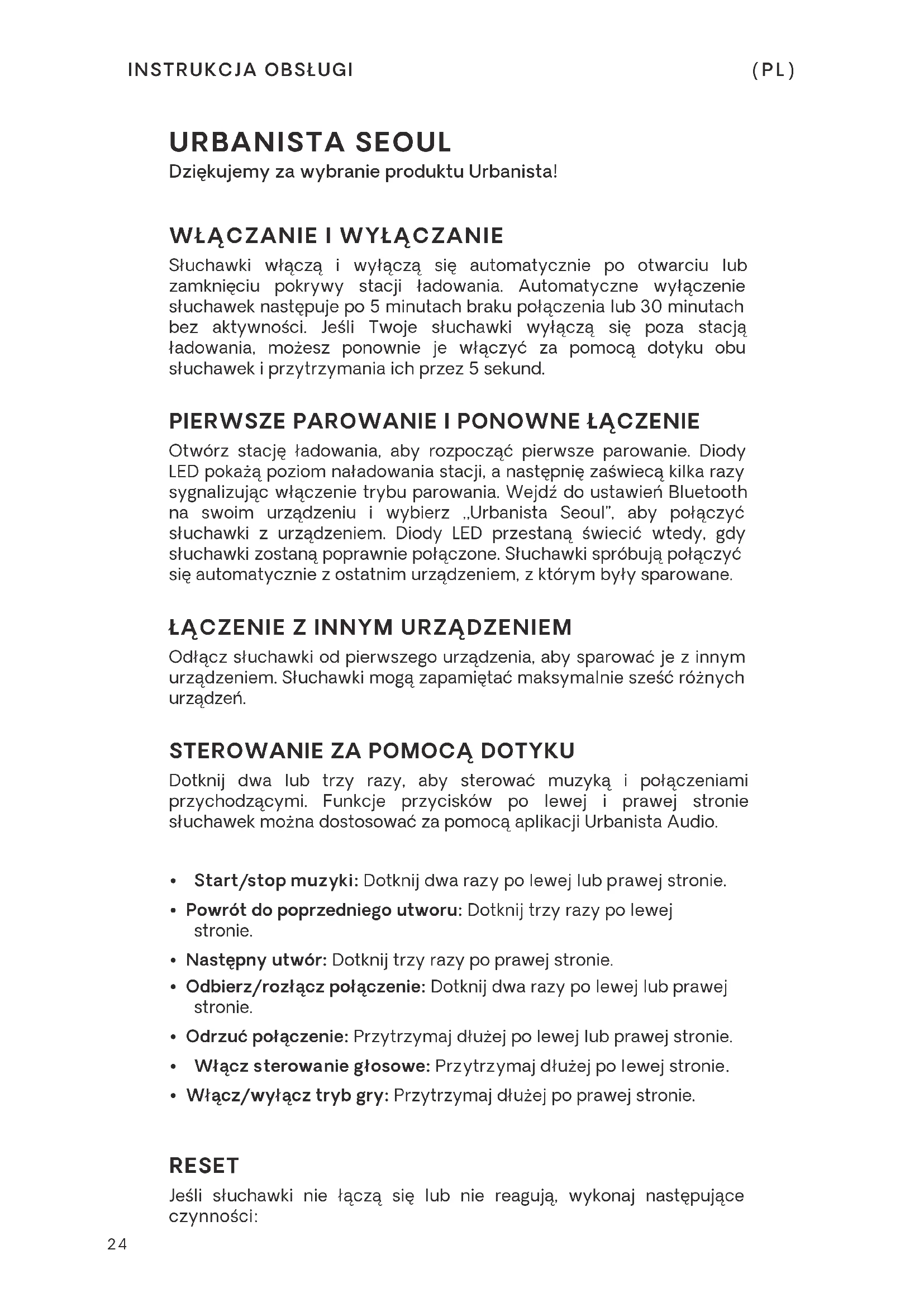 INSTRUKCJA OBSŁUGI Seoul Urbanista