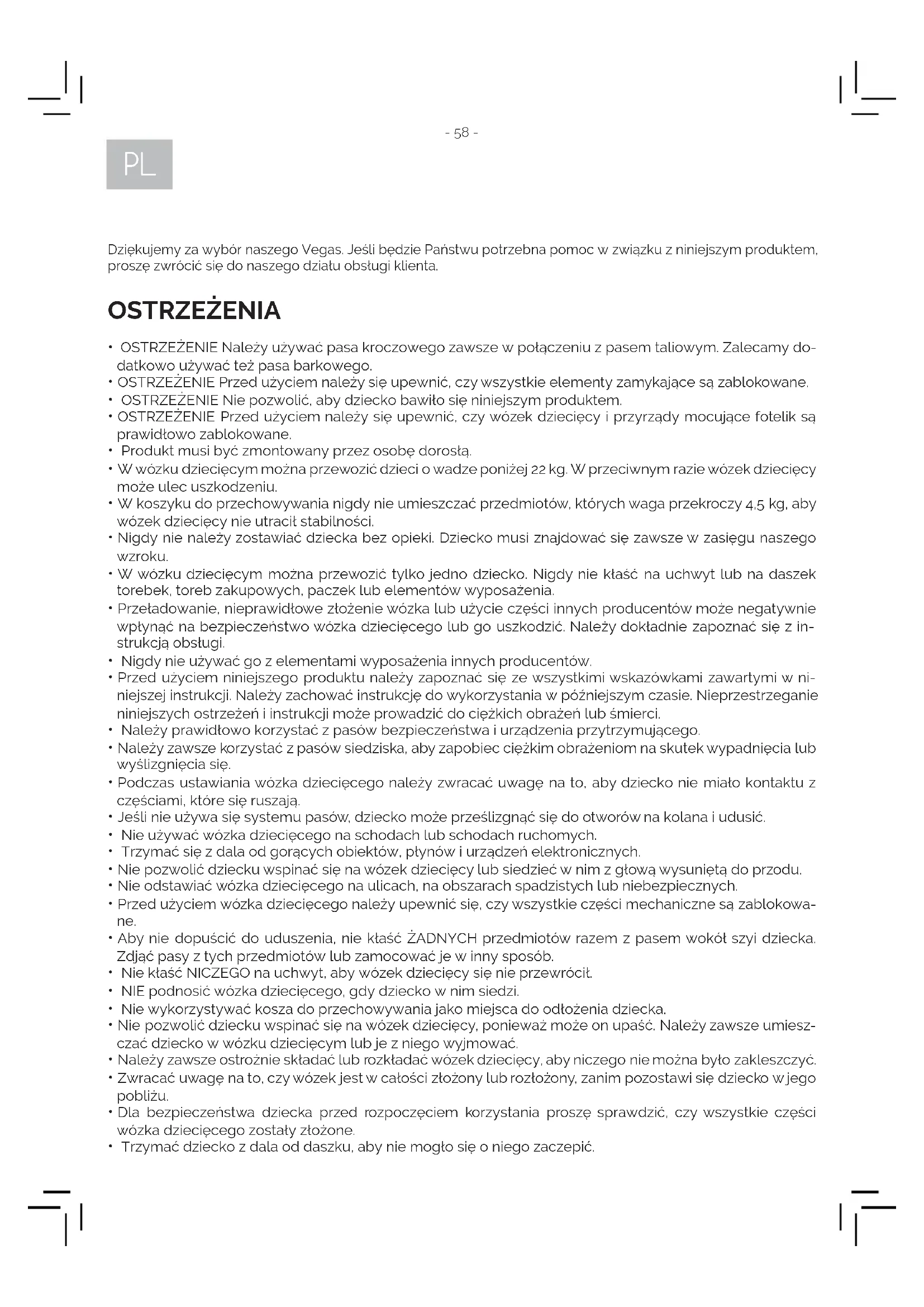 - Wózek spacerowy jest przeznaczony dla dzieci od wieku niemowlęcego aż do momentu, gdy maksymal- na waga dziecka nie przekroczy 22 kg.