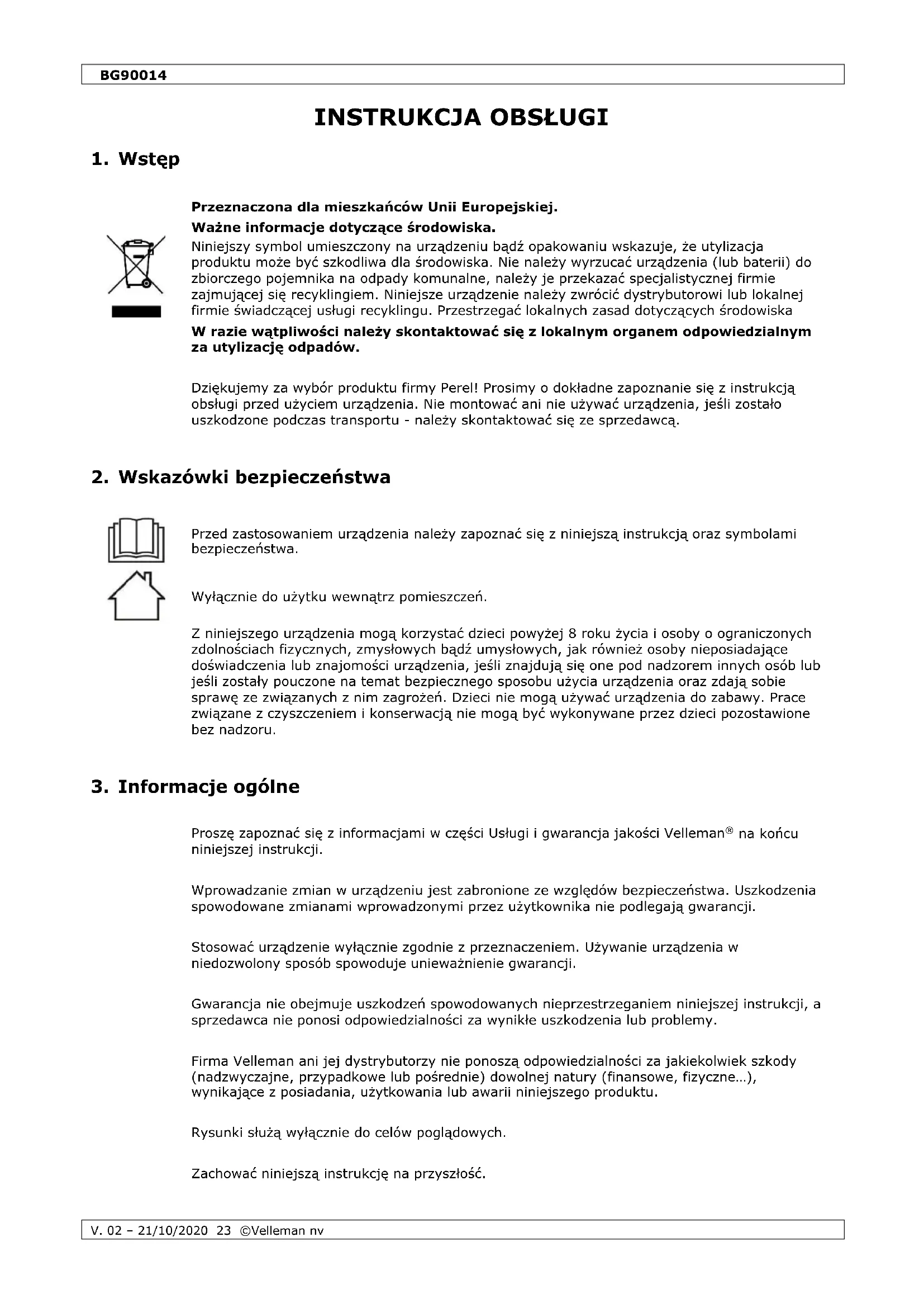 INSTRUKCJA OBSŁUGI BG90014 Perel