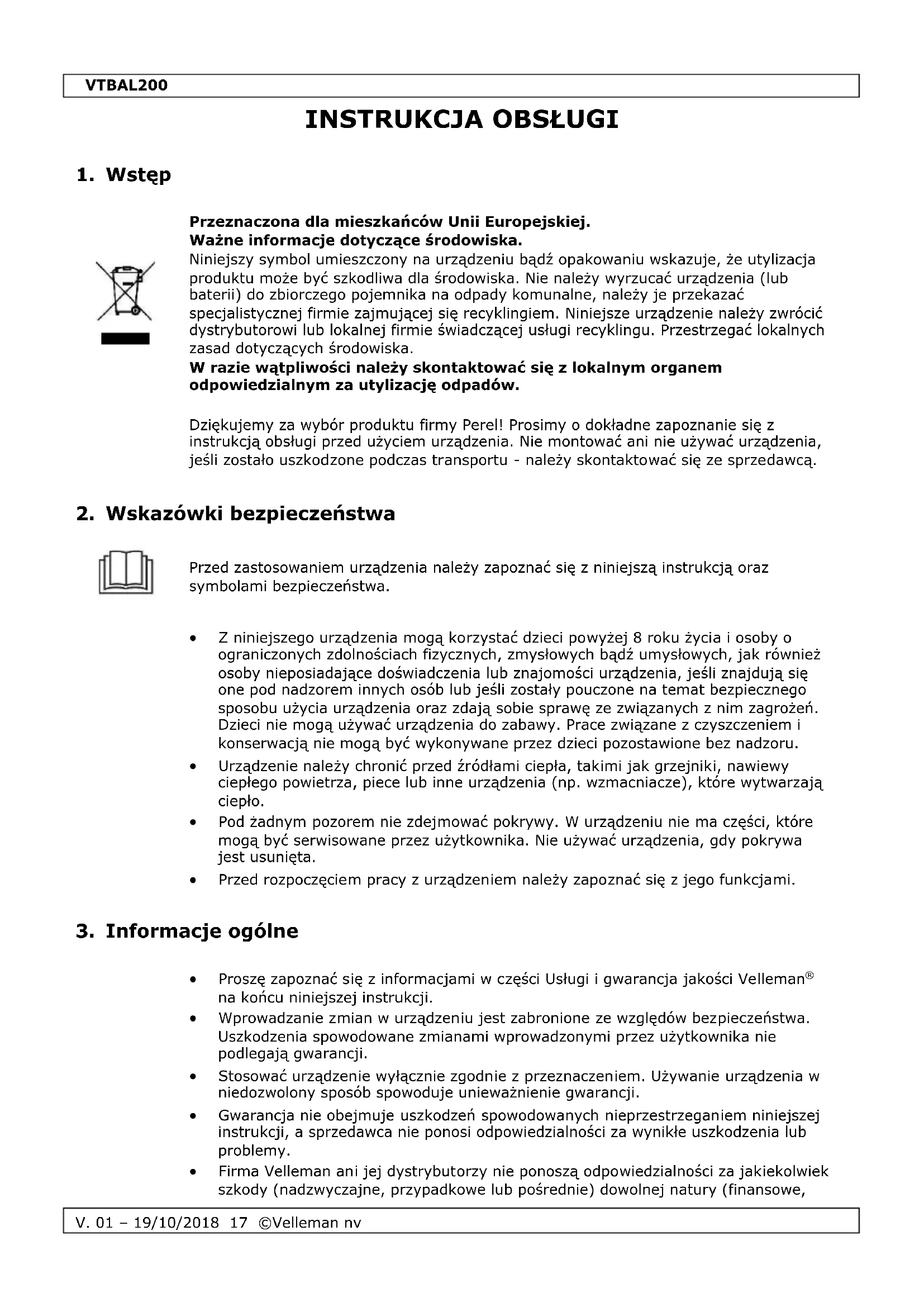 INSTRUKCJA OBSŁUGI VTBAL200 Perel