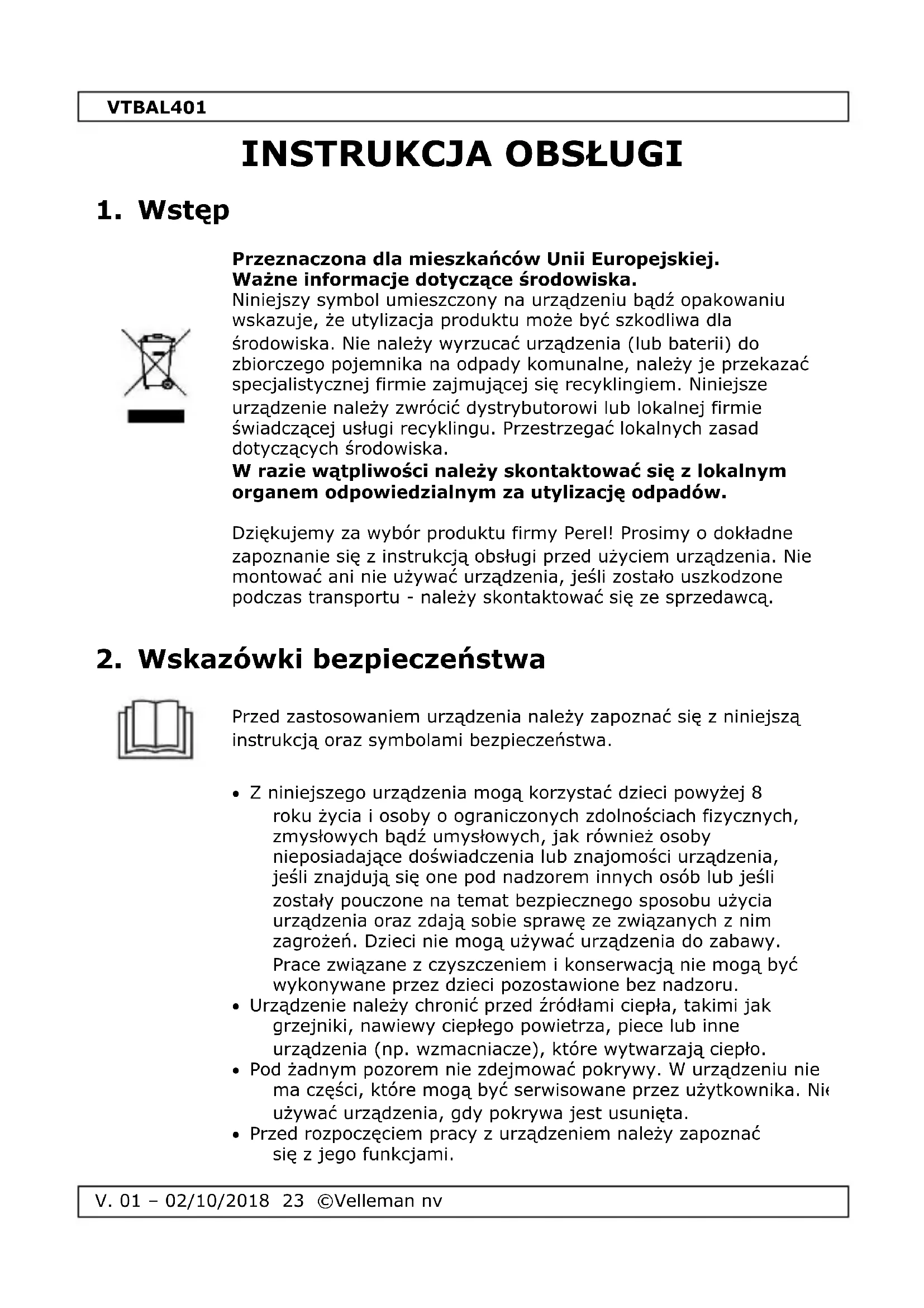 INSTRUKCJA OBSŁUGI VTBAL401 Perel