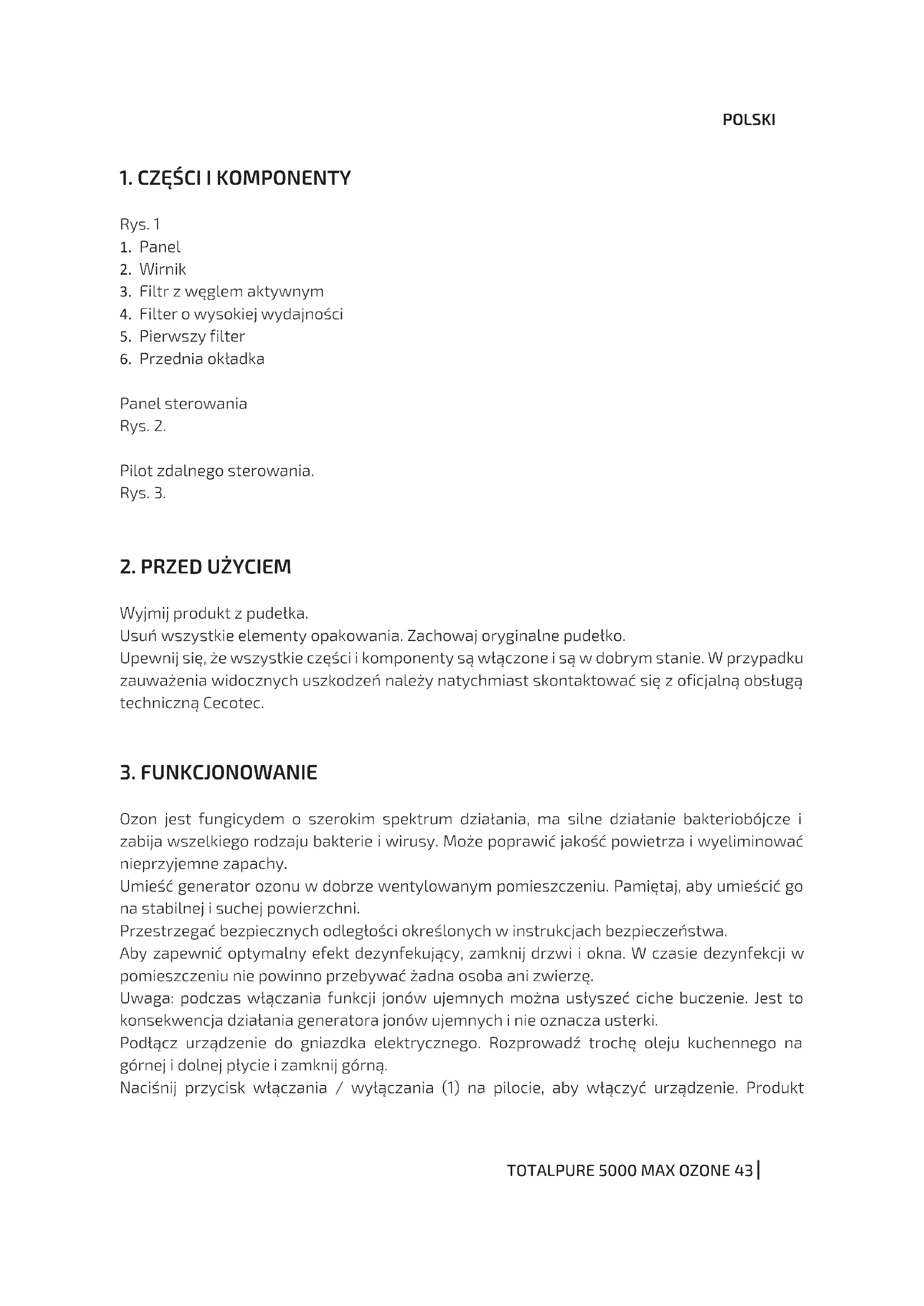 INSTRUKCJA OBSŁUGI TotalPure 5000 Max Ozone CECOTEC
