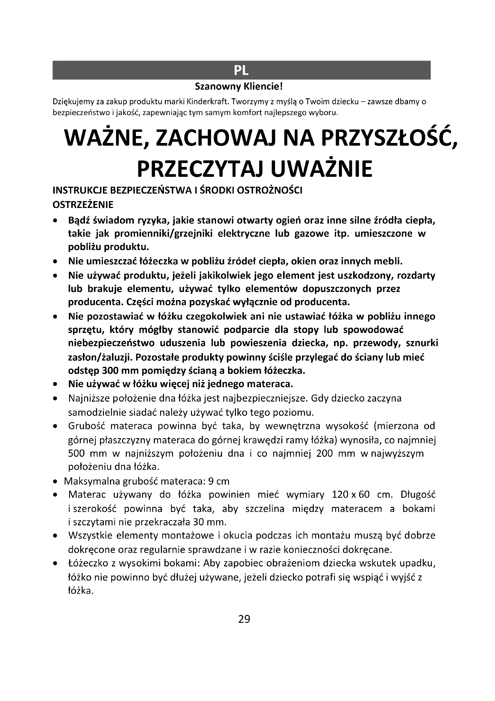 Szanowny Kliencie! Dziękujemy za zakup produktu marki Kinderkraft. Tworzymy z myślą o Twoim dziecku – zawsze dbamy o bezpieczeństwo i jakość, zapewniając tym samym komfort najlepszego wyboru. WAŻNE, ZACHOWAJ NA PRZYSZŁOŚĆ,