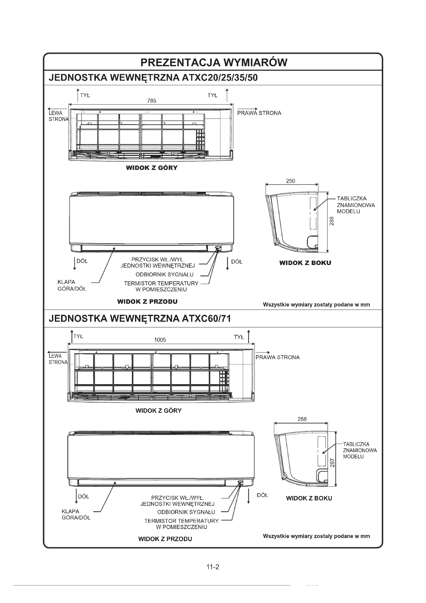 TABLICZKA ZNAMIONOWA MODELU DÓŁ DÓŁ TYŁ TYŁ Wszystkie wymiary zostały podane w mm Wszystkie wymiary zostały podane w mm11-3 Polish