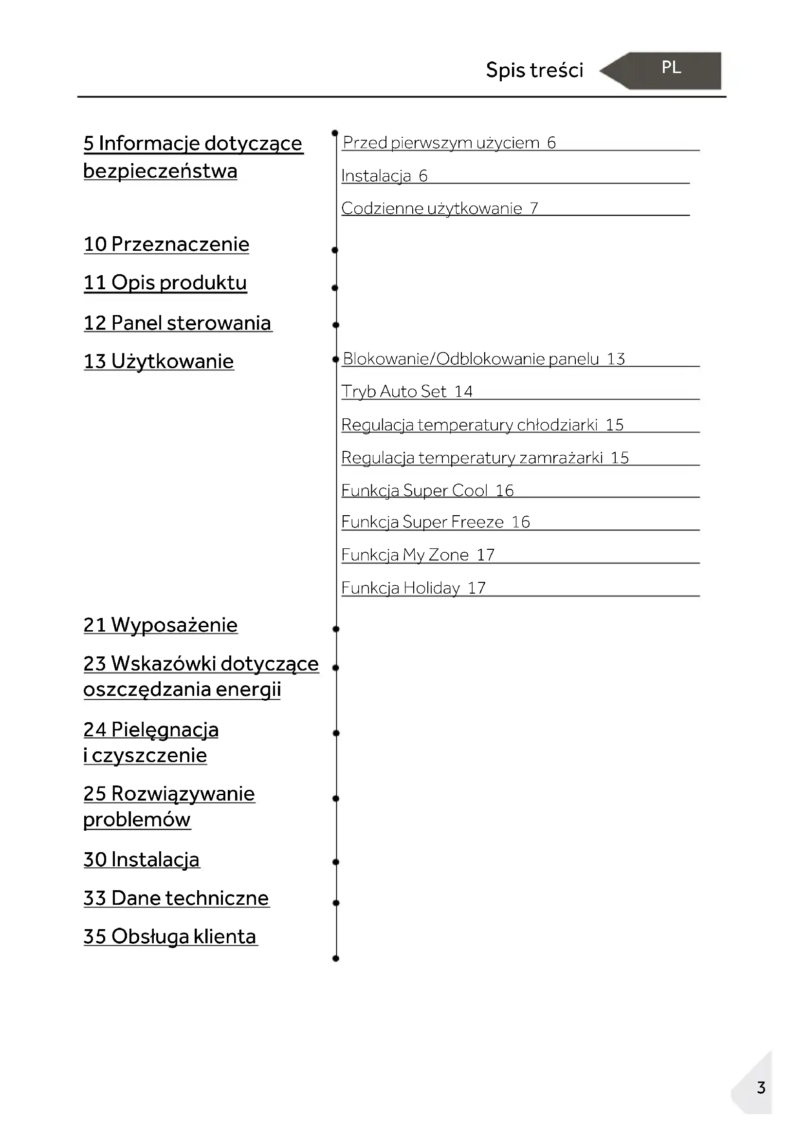 23 Wskazówki dotyczące oszczędzania energii 24 Pielęgnacja i czyszczenie 25 Rozwiązywanie problemów 30 Instalacja 33 Dane techniczne 35 Obsługa klientaDziękujemy