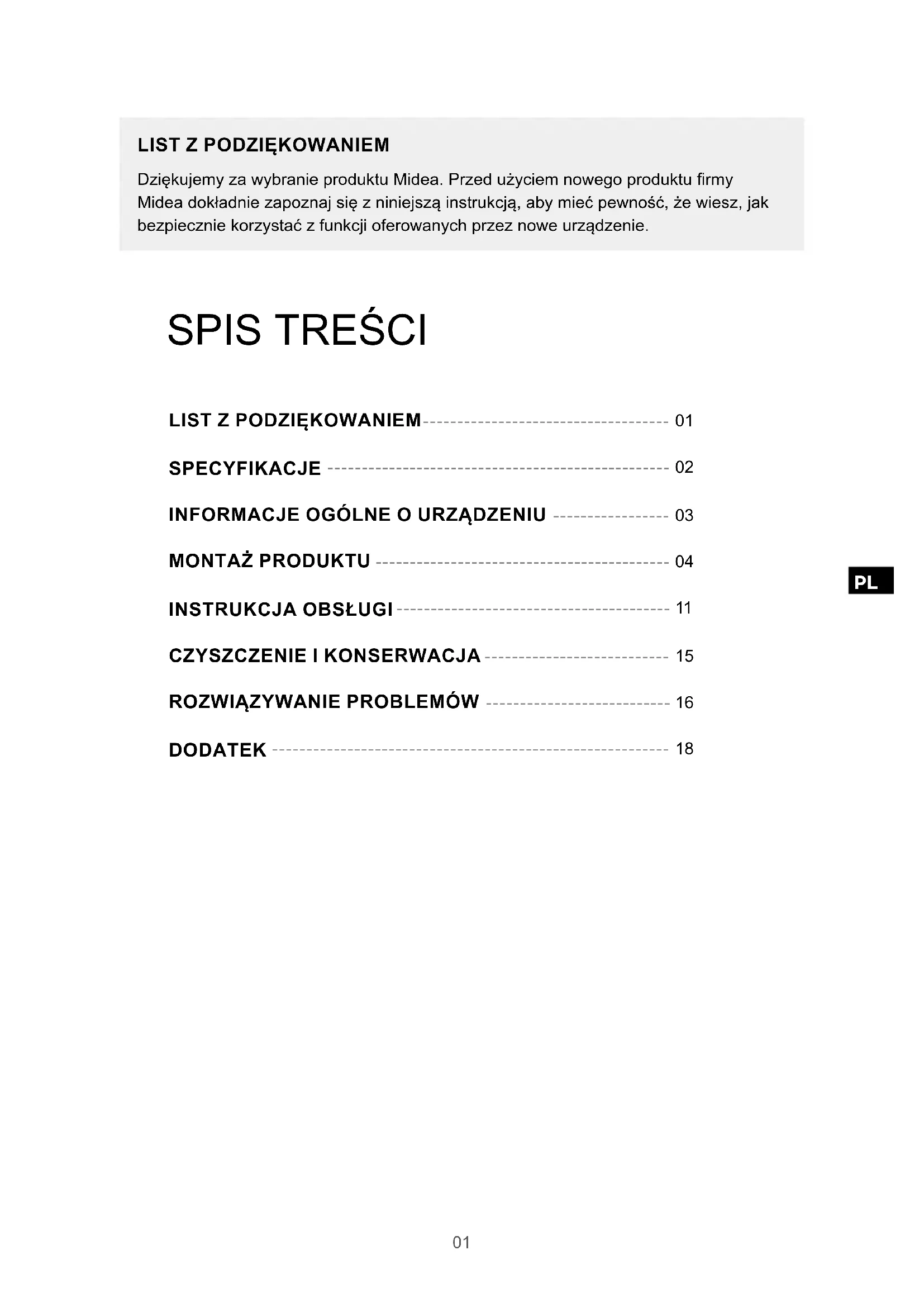 Dziękujemy za wybranie produktu Midea. Przed użyciem nowego produktu rmy Midea dokładnie zapoznaj się z niniejszą instrukcją, aby mieć pewność, że wiesz, jak bezpiecznie korzystać z funkcji oferowanych przez nowe urządzenie.
