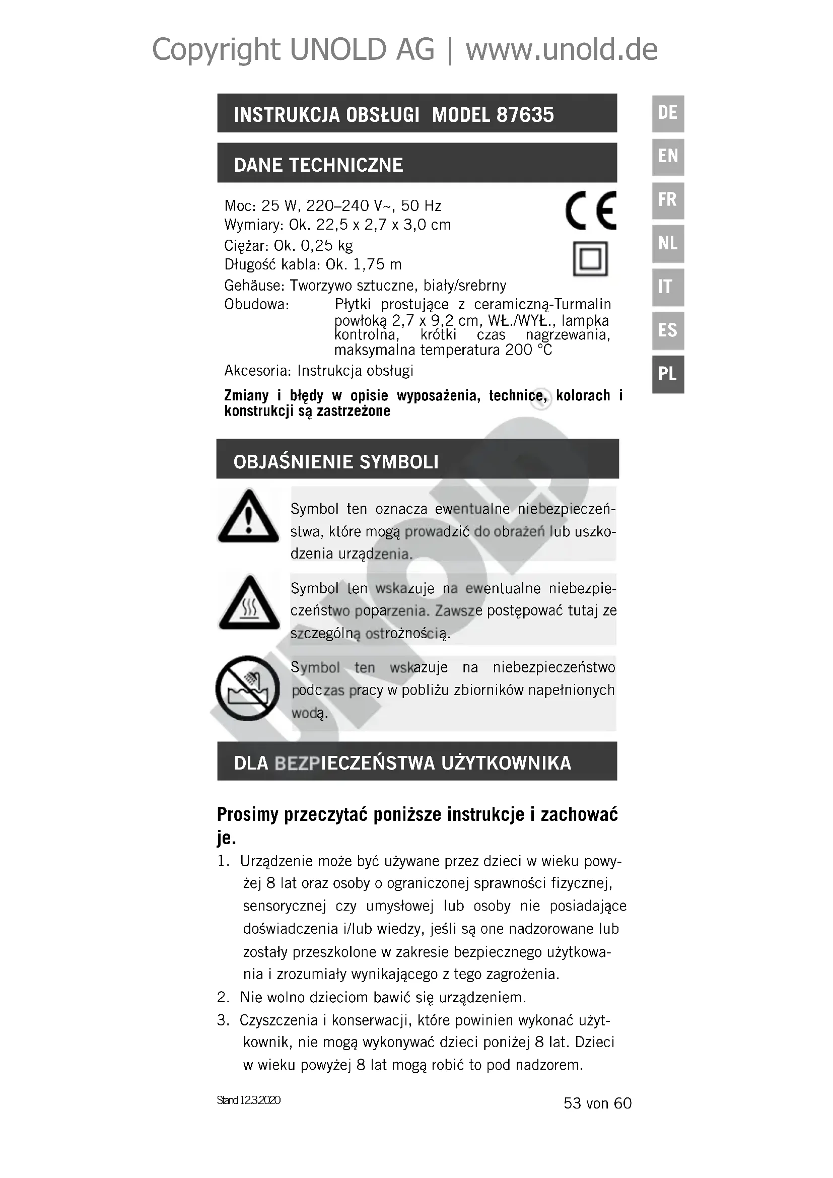 Luxury 87635 - Prostownica do włosów UNOLD - Bezpłatna instrukcja obsługi