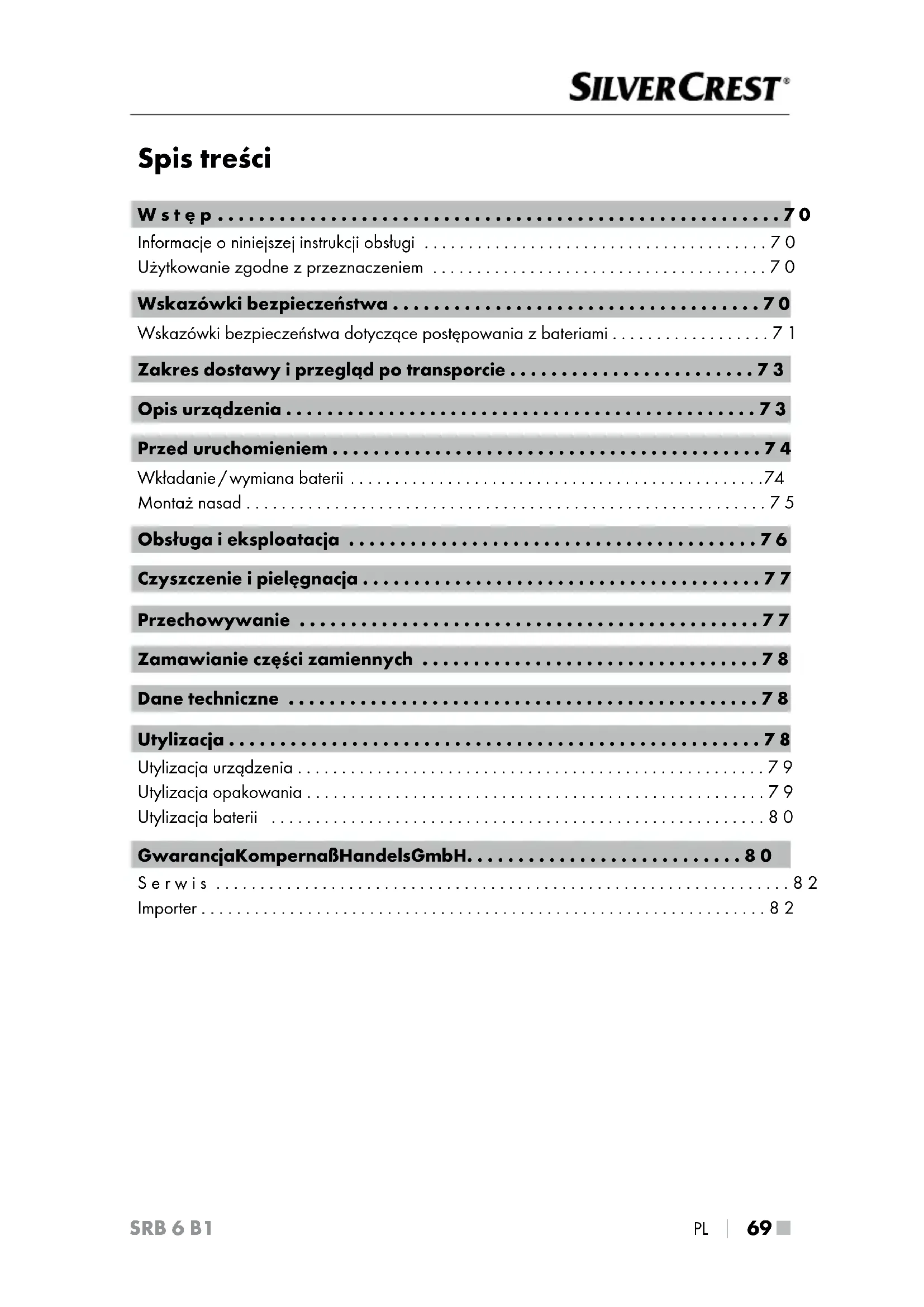 INSTRUKCJA OBSŁUGI SRB 6 B1 SILVERCREST