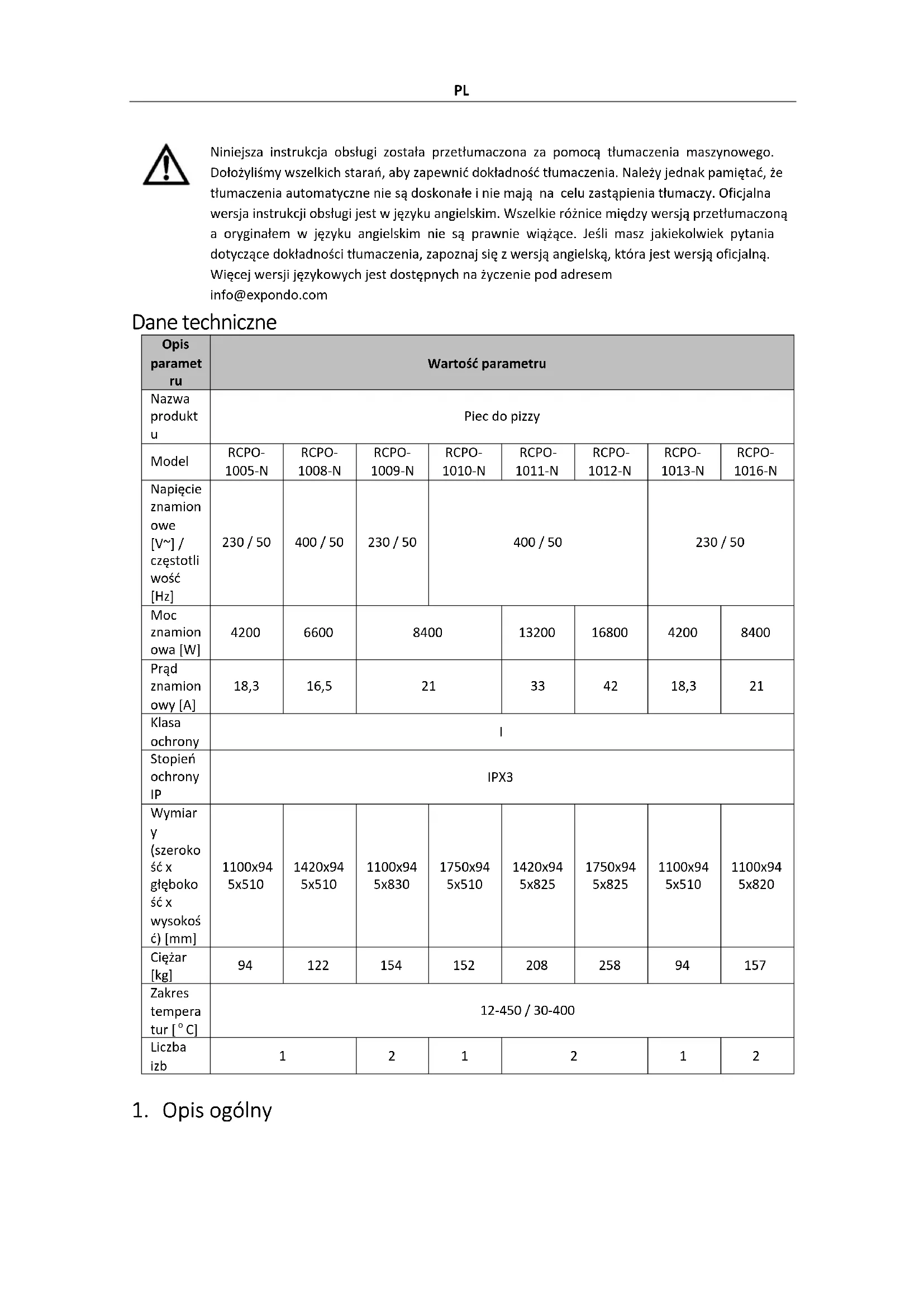 Niniejsza instrukcja obstugi zostafa przytumlaczona za pomocztlumaczenia maszynowego. Dolozyliismy wszelkich starań, aby zapewnic dokladnosc tllumaczenia. Nalezy"Justnak pamietac, ze tllumaczenia automatyczne nie są doskonaie iNie sąmaj na celu zastapienia tllumaczy. Oficjalna wersja instrukcji obstugi jest w jejzyku angielskim. Wszelkie roznice między wersja przytumlaczona a oryginalem w jejzyku angielskim nie są prawnie wiązace. Jesli masz jakiekolwiek pytania dotyczade dokladnosci tllumaczenia, zapoznaj sie z wersja angielska, która jest wersja oficjalna. Wiecej wersji jejzykowych jest dostepnych na zyczenia pod adresem info@expondo.com
