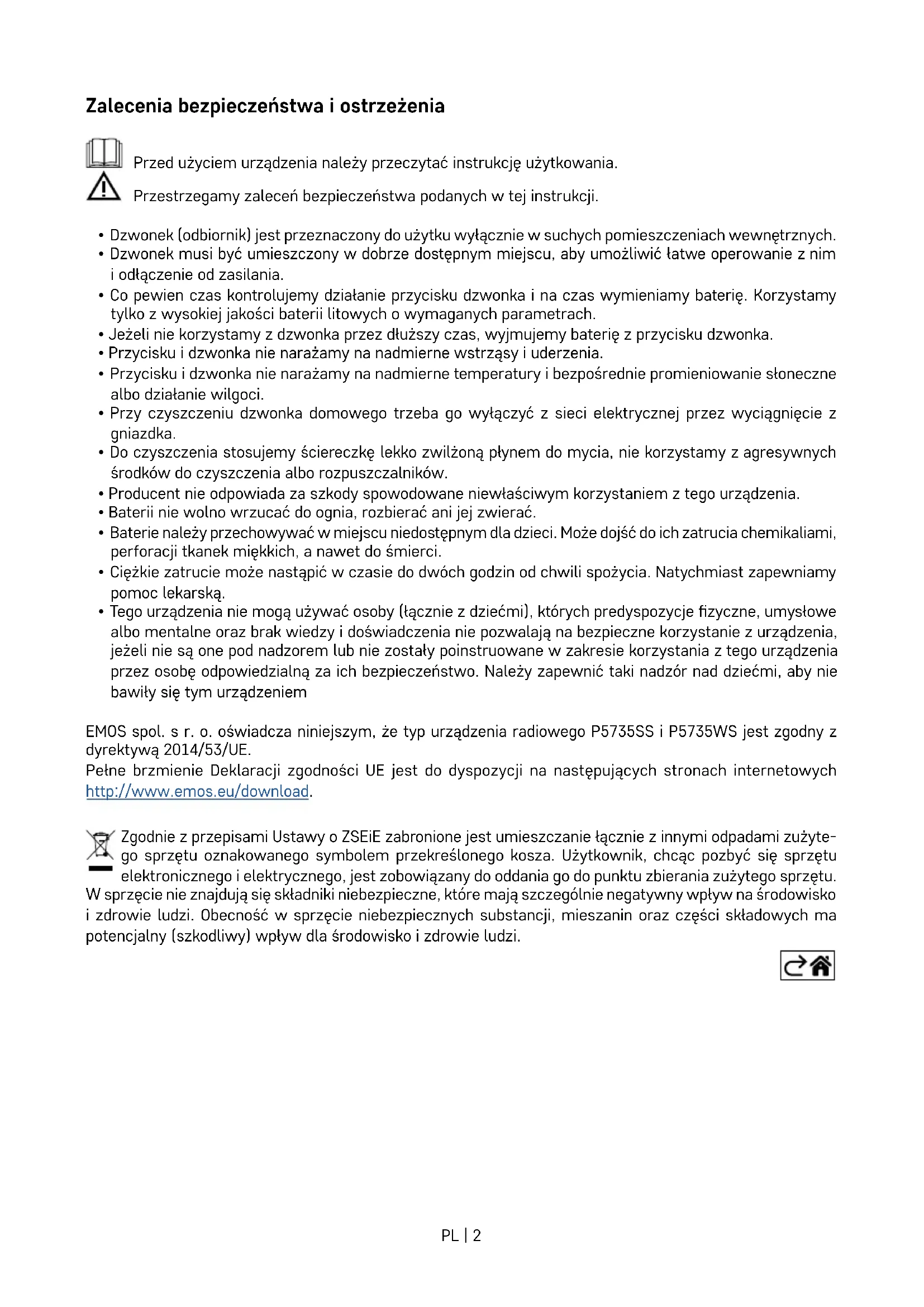 P5735SS - Dzwonki do drzwi Emos - Bezpłatna instrukcja obsługi