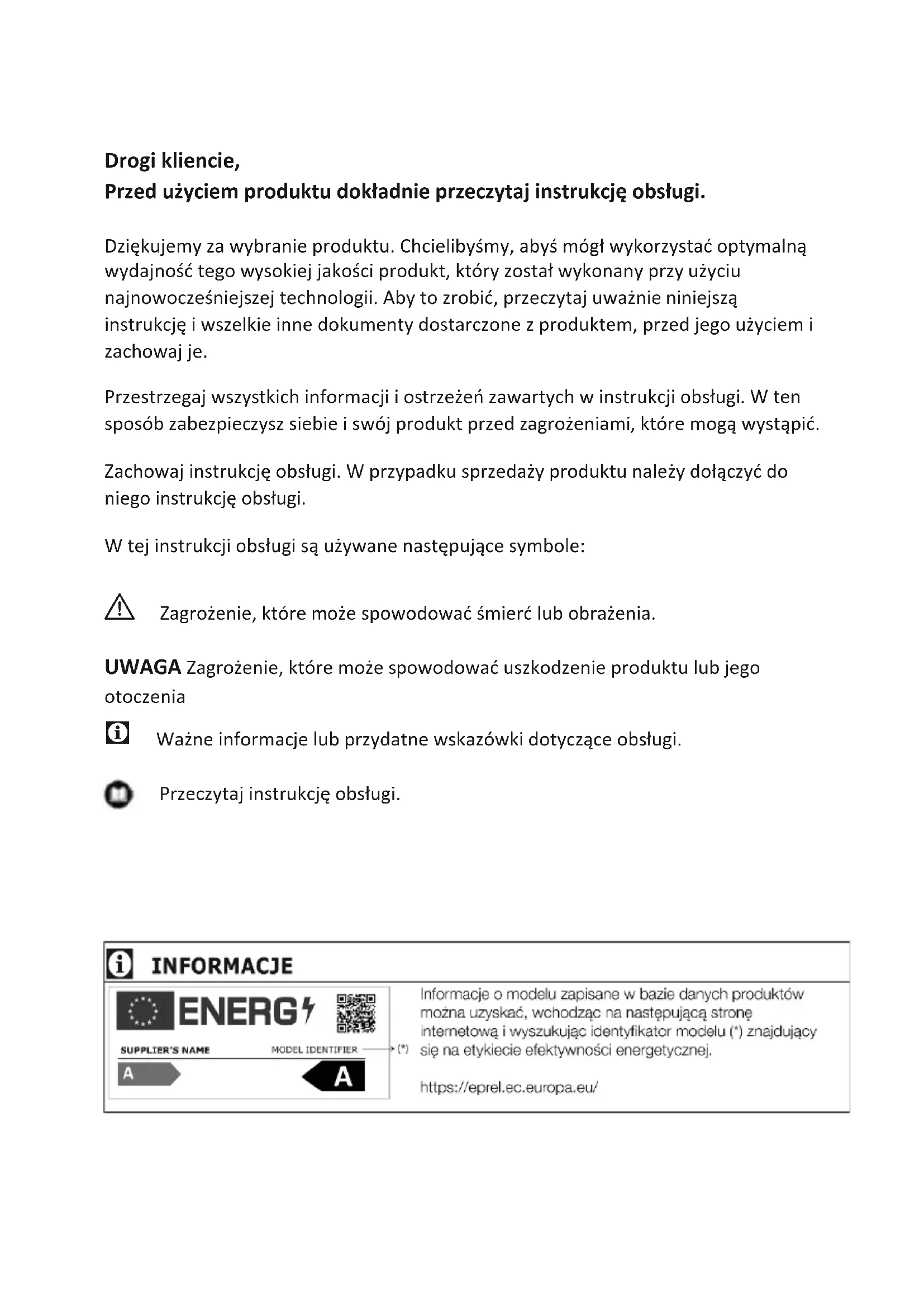 - Nasza firma nie ponosi odpowiedzialności za szkody, które mogą powstać w przypadku nieprzestrzegania instrukcji. A Procedury instalacji i naprawy muszą być zawsze wykonywane przez producenta, autoryzowanego przedstawiciela serwisu lub wykwalifikowaną osobę wskazaną przez importera. A Używaj tylko oryginalnych części I akcesoriów. A Oryginalne części zamienne będą dostępne przez 10 lat od daty zakupu produktu. A Nie naprawiaj ani nie wymieniaj żadnej części produktu, chyba że jest to wyraźnie określone w instrukcji obsługi. A Nie wprowadzaj żadnych zmian technicznych w produkcie. A 1.1. Zastosowanie