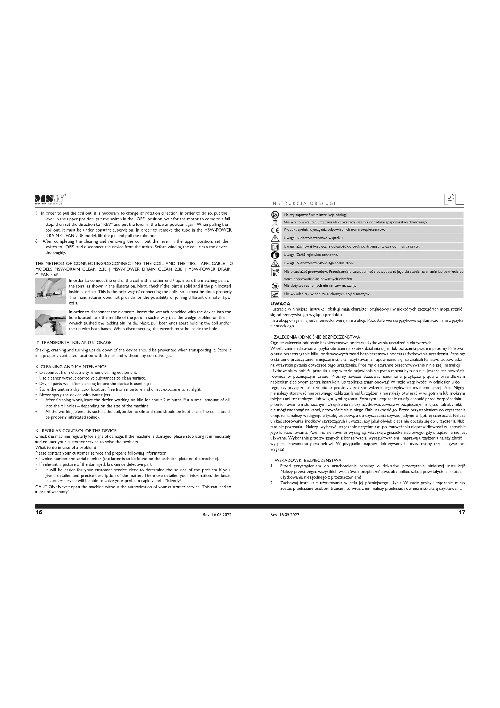 prądu. Należy pamiętać, aby przed zwinięciem spirali dokładnie wyczyścić urządzenie. Rev. 16.05.2022